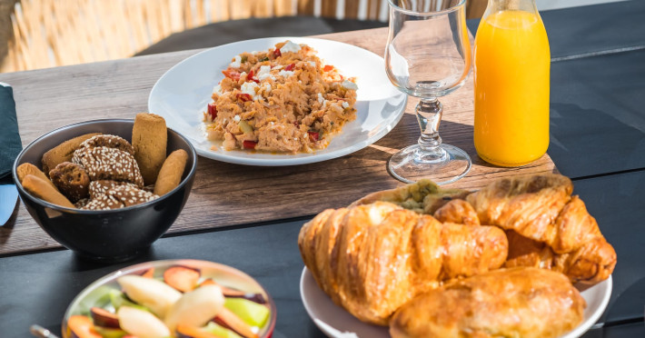 Soak up the modern and Cyclidic traditional charm of these suites! They are amphitheatrically built on a slope that overlooks the east region of the island with the broad plains. The panorama from Vourvoulos is awe-inspiring as its position offers magnificent views to vast vineyards, meadows and shores.