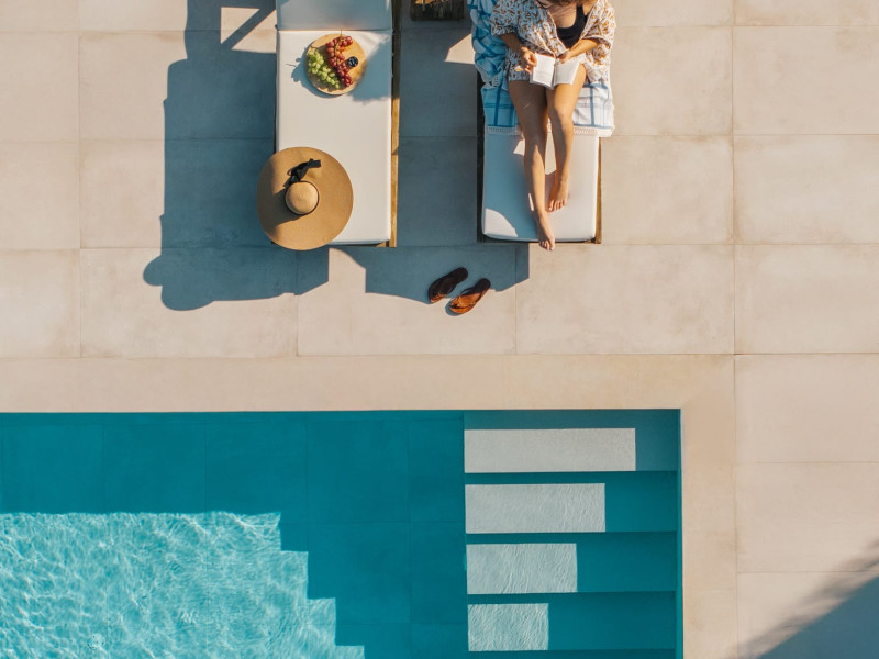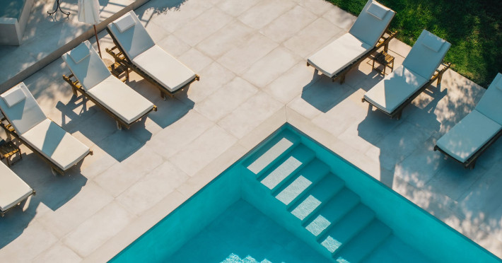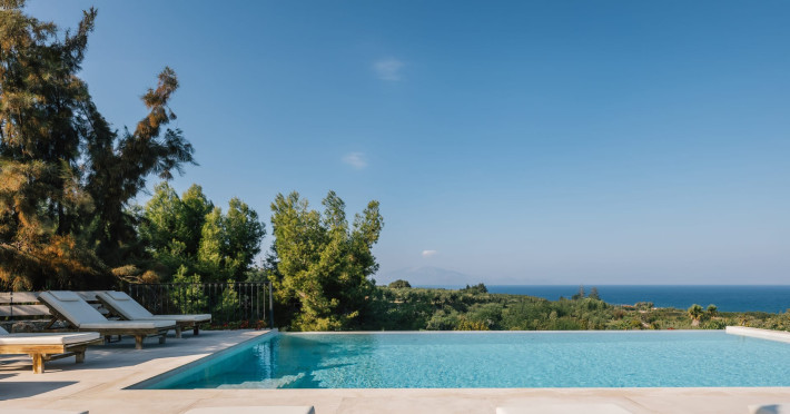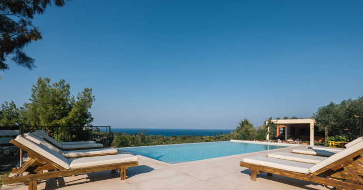 Situated amphitheatrically in a flourished lawn, offering an excellent view to the sea. The beaches of the area (Ampoula - Psarou), awarded with the "blue flags", are only just 800 metres from the villas.