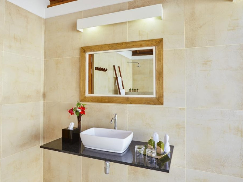Rooms feature air conditioning, free WIFI, overhead ceiling fan, sitting area, mini bar, fridge (to fill upon request, chargeable), complimentary tea/coffee, personal safe, wooden floors, private porch with furniture, private bathroom, and bath accessories.