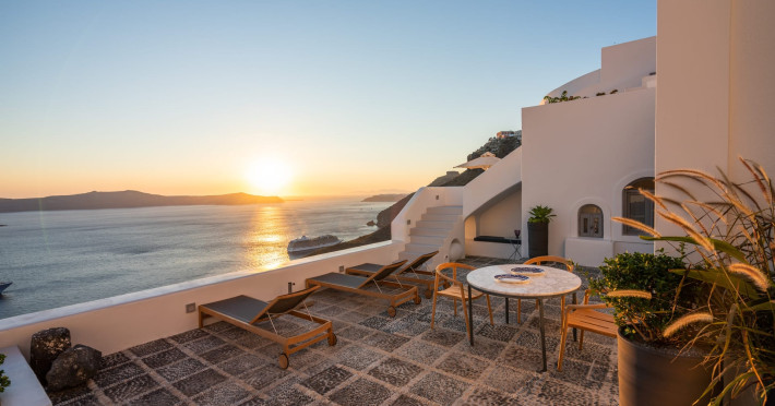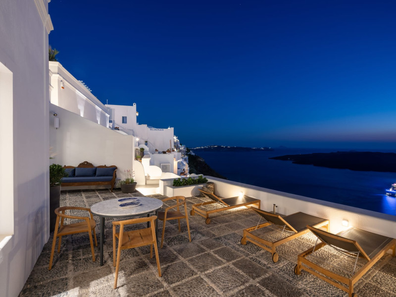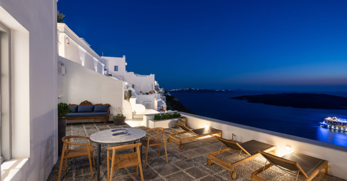Cascading along the cliff side, with suspended views over the picturesque port of Fira, Inspire Santorini Luxury Villas is a uniquely inspiring place endowed with character and positive energy. An estate of 4 villas, bathed in the characteristic white light of Santorini, with magnificent views over the volcanic crater to the infinite blue of the Aegean, and its red and purple sunset hues.