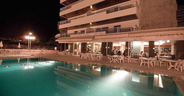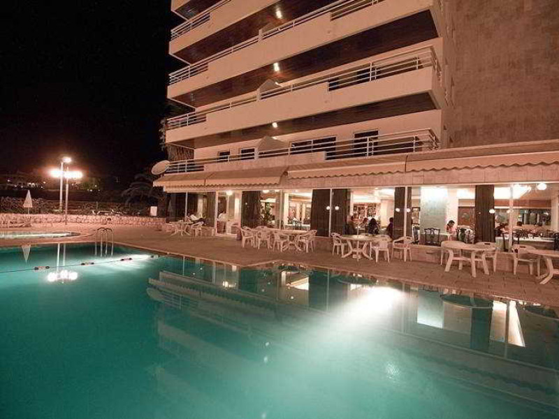 Located close to the town centre where there are many shopping and entertainment venues, this comfortable apartment complex lies just 100 m from links to the public transport network and about 400 m from the nearest beach.||Renovated in 2005, this beach hotel comprises a total of 74 studios spread over 8 floors and features a foyer with a 24-hour reception desk, lifts, a currency exchange bureau and a safe. There is also a cocktail bar, an air-conditioned à la carte restaurant (including highchairs for infants), Internet access (additional fee) and a TV room. Those arriving by car may take advantage of the car park and there is a playground for younger guests. Finally, a laundry service rounds off the facilities.||The air-conditioned studios come with a bathroom, a hairdryer, a kitchenette, a fridge, a hire safe and central heating. There is also a direct dial telephone, Internet access, a radio/ hi-fi system and satellite/ cable TV in each as standard.||There is a freshwater swimming pool in the outdoor complex. a childrens pool, a sun terrace with parasols and sun loungers and a pool bar. The seasonal entertainment programme provides some variation and the nearest golf course is 600 m away.||Guests may select their breakfast from an ample buffet; lunch and dinner may be taken à la carte or chosen from the menu.