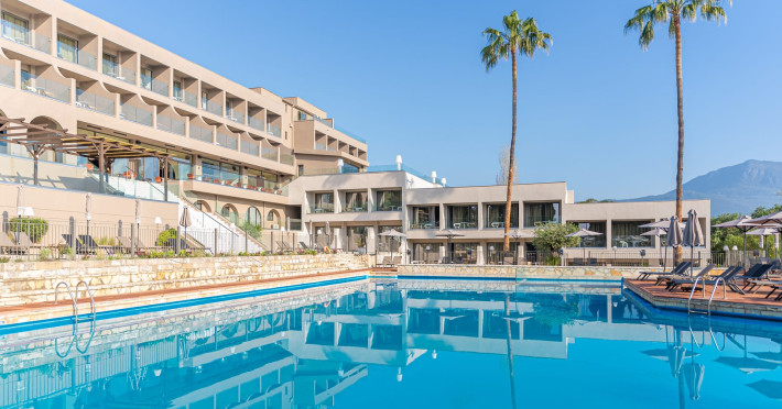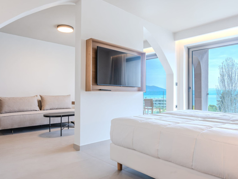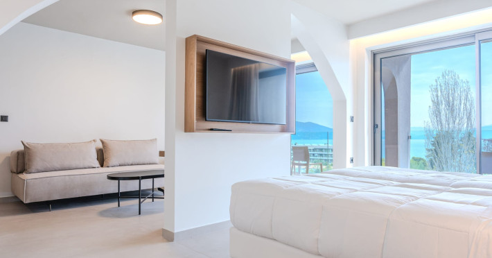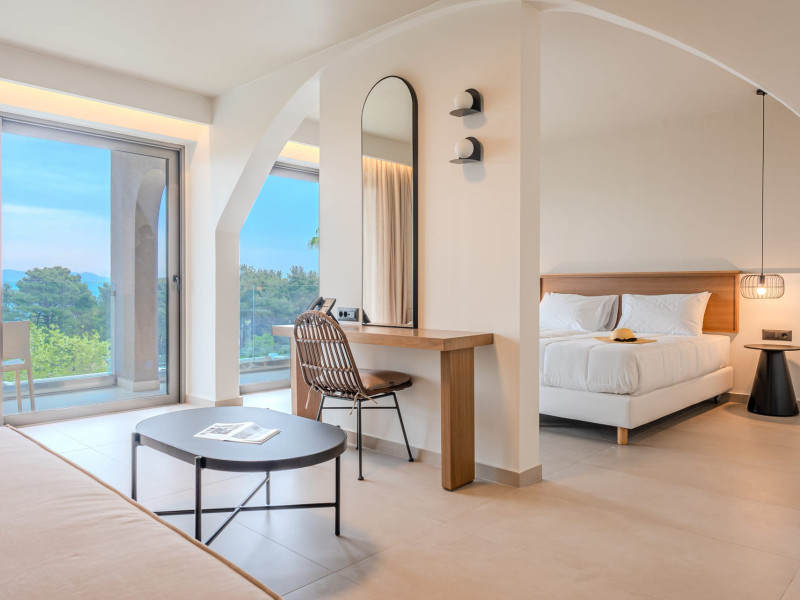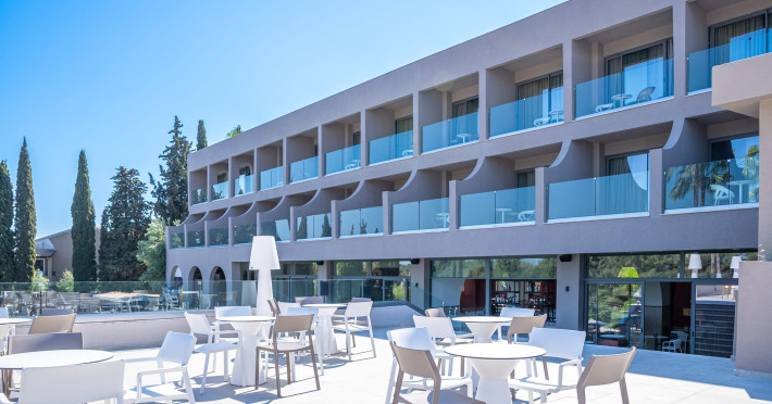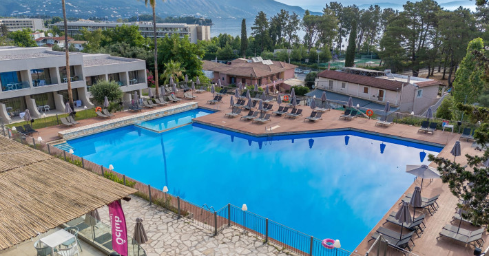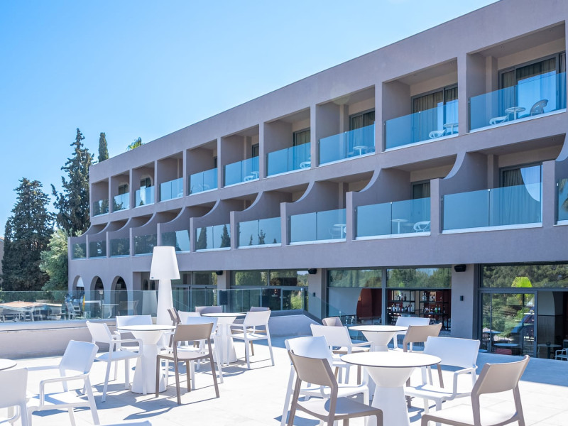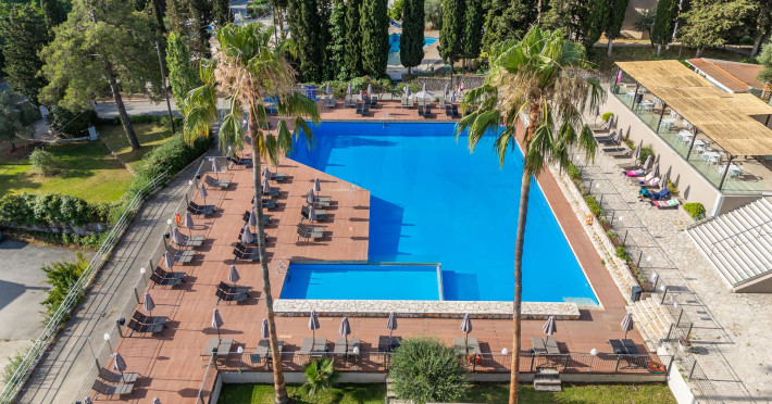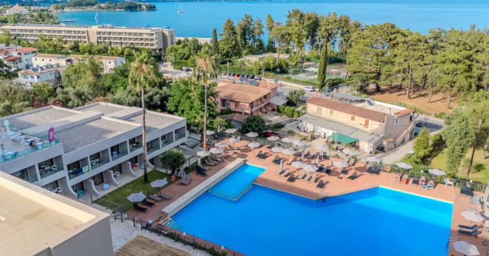 Iolida Corfu Hotel is located in the historic island of Corfu, meters away from the popular Dassia beach, distinguished by its sandy and shingle shoreline and the azure waters. Situated in close proximity to the charming village of Dassia, the hotel offers an all-inclusive experience. Spread across three floors, the resort boasts a large pool, a children’s pool, a main restaurant, a main bar, a pool bar, a snack bar, spa and massage facilities, and a well-equipped gym – providing an array of amenities for you and your family’s enjoyment. Furthermore, Iolida Hotel provides a business center, further enhancing its appeal to business travelers. With 127 rooms, the resort harmonizes modern and elegant aesthetics, combining simplicity, style, and functionality for an exceptional accommodation experience. For the comfort and safety of all our guests, we wish to highlight that our property may present challenges for individuals with mobility limitations.