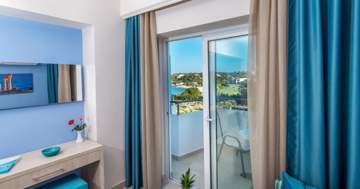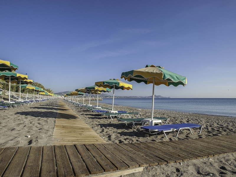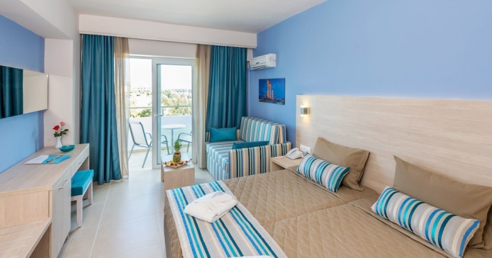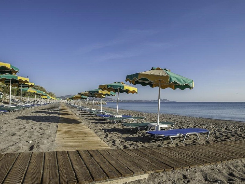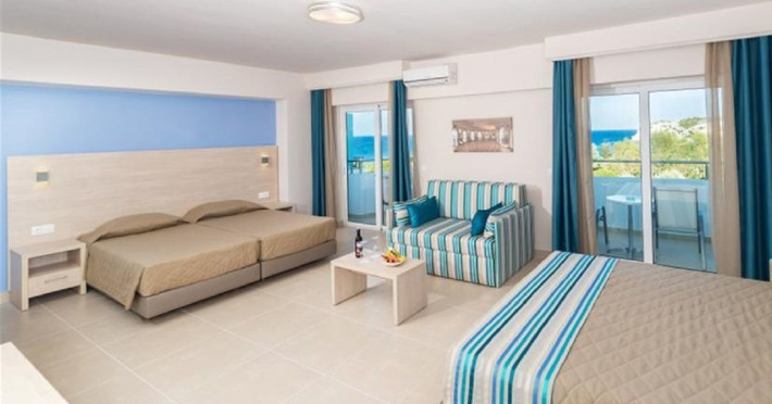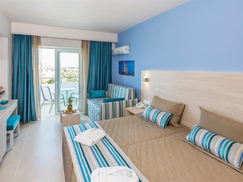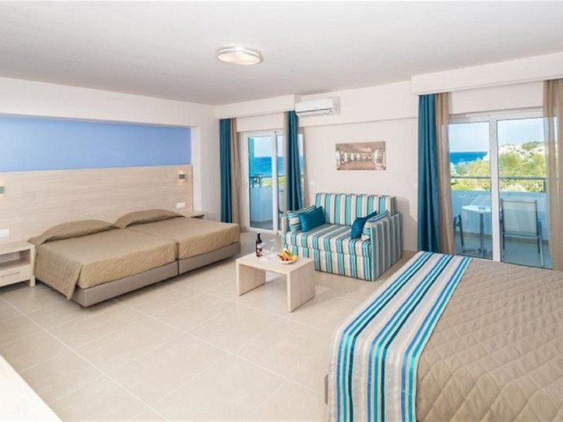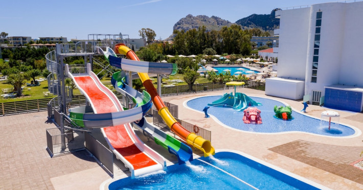Facilities and amenities include 24-hour reception, lounge, lobby, elevator, mini market, Wi-Fi in public areas, late check-out (upon availability, with extra charge), currency exchange, meeting room, parking, garden, outdoor swimming pool, aquapark (with waterslides for kids & adults, free of charge), sunbeds & umbrellas (free at the pool & the garden area, with extra charge at the beach), sun terrace, Blue Flag beach, chapel, doctor on call (extra charge), a restaurant, a lounge bar, a jacuzzi (in the pool area), hairdresser service (extra charge), Rooms feature air-conditioning/heating (free from 01/06 to 15/09, all other periods are with an extra charge per day), direct-dial telephone (extra charge), Wi-Fi, safety deposit box, satellite TV, fridge, bathtub/WC, hairdryer, balcony, maid service (3 times per week), towel change (every 2nd day or daily on request), linen change (3 times per week), laundry service (extra charge), a baby cot, and babysitting service (on request, extra charge).Please note that some of the facilities may be closed due to weather / seasonal conditions.The All Inclusive Concept includes all meals (breakfast, lunch, dinner and snacks) and mealtime drinks such as soft drinks, beer, wine, water and alcoholic drinks, all of local brands. Drinks are served from morning until late evening (approx until 22.00 -24.00 hrs). Opening times vary between different hotels. In certain hotels, the activities program is also included.Address: 85103, Kolymbia, Rhodes, Greece.