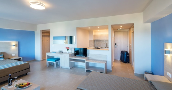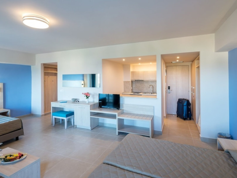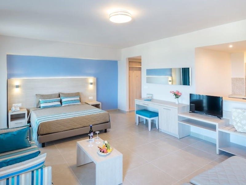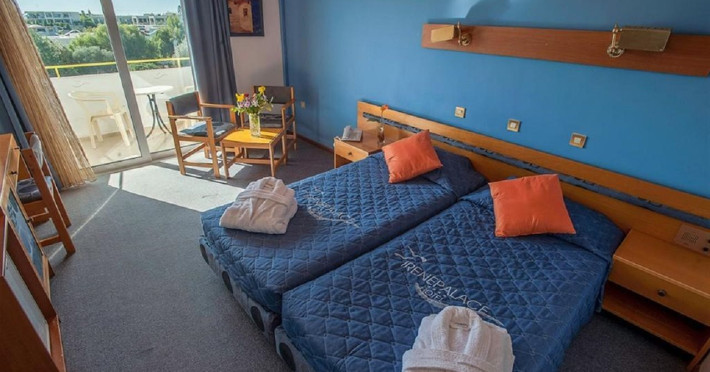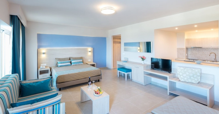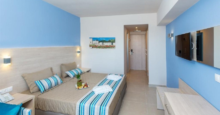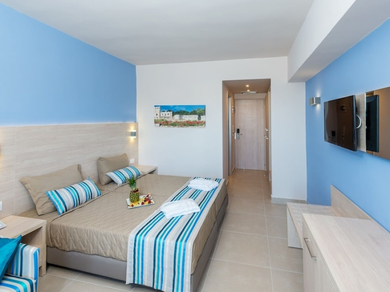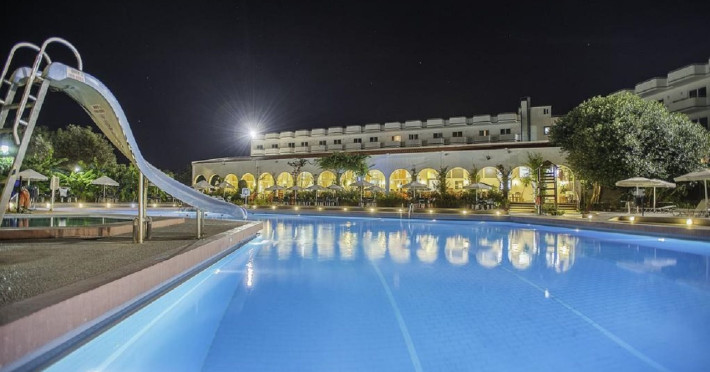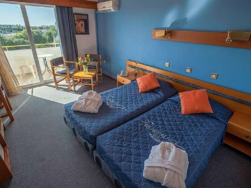 Facilities and amenities include 24-hour reception, lounge, lobby, elevator, mini market, Wi-Fi in public areas, late check-out (upon availability, with extra charge), currency exchange, meeting room, parking, garden, outdoor swimming pool, aquapark (with waterslides for kids & adults, free of charge), sunbeds & umbrellas (free at the pool & the garden area, with extra charge at the beach), sun terrace, Blue Flag beach, chapel, doctor on call (extra charge), a restaurant, a lounge bar, a jacuzzi (in the pool area), hairdresser service (extra charge), Rooms feature air-conditioning/heating (free from 01/06 to 15/09, all other periods are with an extra charge per day), direct-dial telephone (extra charge), Wi-Fi, safety deposit box, satellite TV, fridge, bathtub/WC, hairdryer, balcony, maid service (3 times per week), towel change (every 2nd day or daily on request), linen change (3 times per week), laundry service (extra charge), a baby cot, and babysitting service (on request, extra charge).Please note that some of the facilities may be closed due to weather / seasonal conditions.The All Inclusive Concept includes all meals (breakfast, lunch, dinner and snacks) and mealtime drinks such as soft drinks, beer, wine, water and alcoholic drinks, all of local brands. Drinks are served from morning until late evening (approx until 22.00 -24.00 hrs). Opening times vary between different hotels. In certain hotels, the activities program is also included.Address: 85103, Kolymbia, Rhodes, Greece.