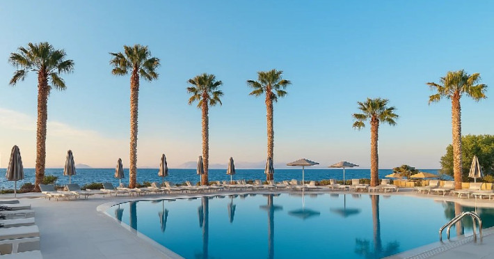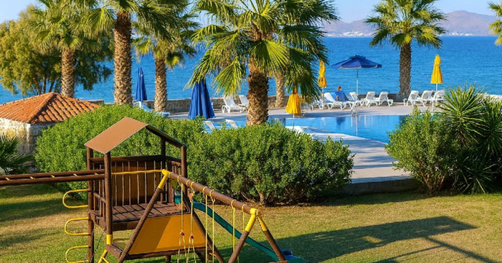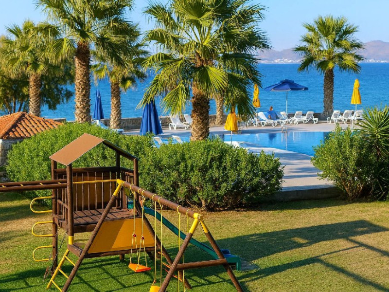 Dotari camere: Camerele si studiourile hotelului sunt amenajate confortabil si sunt dotate cu aer conditionat, Wi-Fi, TV, frigider sau chicineta, seif si baie privata cu dus. Majoritatea unitatilor dispun de balcon sau terasa cu vedere catre mare, piscina sau gradina, oferind un spatiu placut pentru relaxare.