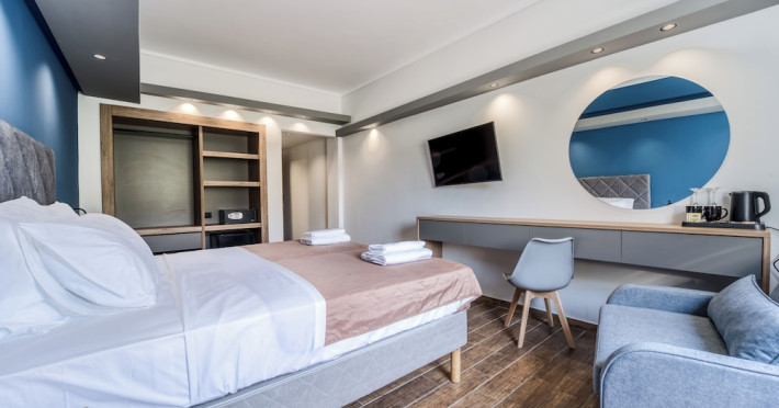 Island City Boutique Hotel is centrally located in Rhodes, within a 10-minute walk of Mandraki Port and Elli Beach. It offers 48 air-conditioned rooms featuring LCD televisions, cable programming, complimentary wireless internet access, private bathrooms with showers, complimentary toiletries, hair dryers, phones, safes, and desks. Guests can enjoy a meal at the restaurant, relax at the bar/lounge, and start their day with a buffet breakfast (available daily from 7:30 AM to 10:30 AM for a fee). The hotel also provides a 24-hour front desk, multilingual staff, and luggage storage. The nearest major airport is Diagoras Airport (RHO), located 14.1 km / 8.8 mi away. The Island City Boutique Hotel is a hotel.