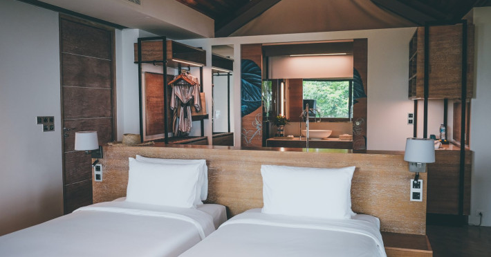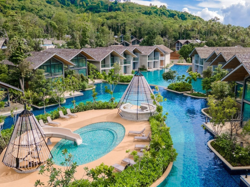 Island Escape by Burasari is a 5-star luxury island resort located on Koh Maphrao, off the coast of Phuket in Thailand. This beachfront property features private beaches, swimming pools, a spa offering massages, body treatments, and facials, and a fitness center. Guests can enjoy local and international cuisine at the restaurants and relax at the beach bar, poolside bar, or one of the lounges. The resort offers free WiFi, a 24-hour front desk, room service, concierge service, and airport transfers (surcharge).