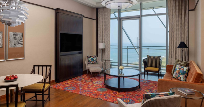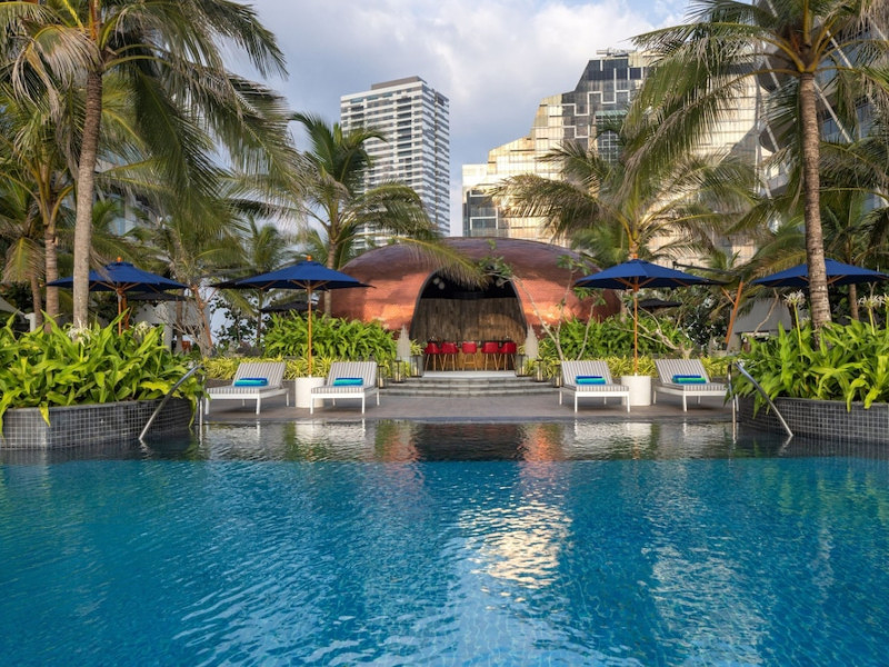 ITC Ratnadipa, A Luxury Collection Hotel, Colombo, centrally located in Colombo, offers air-conditioned rooms with private balconies, minibars, and LED televisions. Each room has a private bathroom with a separate bathtub and shower, complimentary toiletries, and a hairdryer. Complimentary wireless internet access is available throughout the hotel. Guests can enjoy a complimentary buffet breakfast daily from 6:30 AM to 10:00 AM. The hotel features 4 restaurants, a coffee shop/cafe, a poolside bar, and 3 bars/lounges, as well as 24-hour room service. A full-service spa, hair salon, 24-hour business center, concierge services, and dry cleaning/laundry services are also available. Event facilities include a conference center and meeting rooms. Free valet parking is provided. The hotel is near Galle Face Beach, Galle Face Green, and One Galle Face. Bandaranaike International Airport (CMB) is the preferred airport, located 35.4 km away. The ITC Ratnadipa, a Luxury Collection Hotel, Colombo is a hotel.