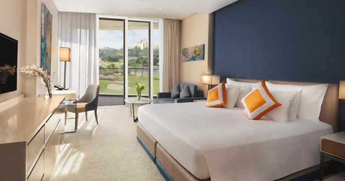 Descriere: JA Lake View Hotel este un hotel de 5 stele modern, parte a complexului exclusivist JA The Resort, care imbina stilul contemporan cu un concept lifestyle activ, intr-un cadru natural spectaculos. Proprietatea ofera privelisti catre terenul de golf de campionat cu 9 gauri, zonele verzi ale resortului si marea din apropiere, fiind conectata armonios la o plaja privata de aproximativ 800 de metri. Cu camere elegante, mai multe piscine, experiente culinare diverse si acces complet la facilitatile extinse ale resortului, hotelul este ideal pentru vacante relaxante, escapade active sau sejururi in familie. Localizare: Hotelul este situat in zona Jebel Ali, in cadrul JA The Resort, intr-un cadru linistit si exclusivist, departe de agitatia urbana, dar cu acces facil catre principalele zone de interes din Dubai. Amplasarea permite oaspetilor sa se bucure de plaja privata, teren de golf, marina si numeroase activitati recreative, intr-un mediu sigur si bine organizat. Dotari camera: JA Lake View Hotel dispune de 348 de camere si suite moderne, toate cu balcon privat si vedere catre desert, terenul de golf sau zonele de apa ale resortului. Camerele sunt amenajate in stil contemporan si includ Wi-Fi, TV cu ecran plat, bai elegante cu dus walk-in sau cada, mobilier confortabil si facilitati moderne. Suitele ofera spatii generoase de living, bai ample, terase mobilate, iar unele categorii beneficiaza de jacuzzi exterior sau piscina privata, fiind ideale pentru familii sau pentru un sejur exclusivist. Facilitati hotel: Hotelul ofera o gama larga de facilitati, inclusiv mai multe piscine exterioare, restaurante si baruri cu concepte culinare variate, rooftop lounge, centru de fitness, acces la Calm Spa & Salon, cluburi si facilitati sportive. Oaspetii au acces complet la infrastructura extinsa a resortului, care include plaja privata, marina, teren de golf, centru ecvestru, terenuri de tenis, facilitati de tir sportiv si activitati recreative pentru toate varstele. Hotelul pune la dispozitie, de asemenea, spatii pentru intalniri si evenimente, servicii concierge, room service si facilitati dedicate familiilor. Site web: https://www.jaresortshotels.com/dubai/ja-the-resort/ja-lake-view-hotel Nota informativa: Pentru anumite facilitati sau servicii din hotel si din cadrul resortului pot fi percepute taxe suplimentare. Oaspetii sunt rugati sa solicite informatii detaliate la receptie, la sosire. Taxa turistica obligatorie: Se achita la receptie.