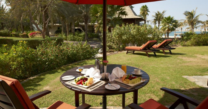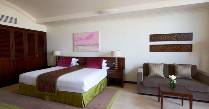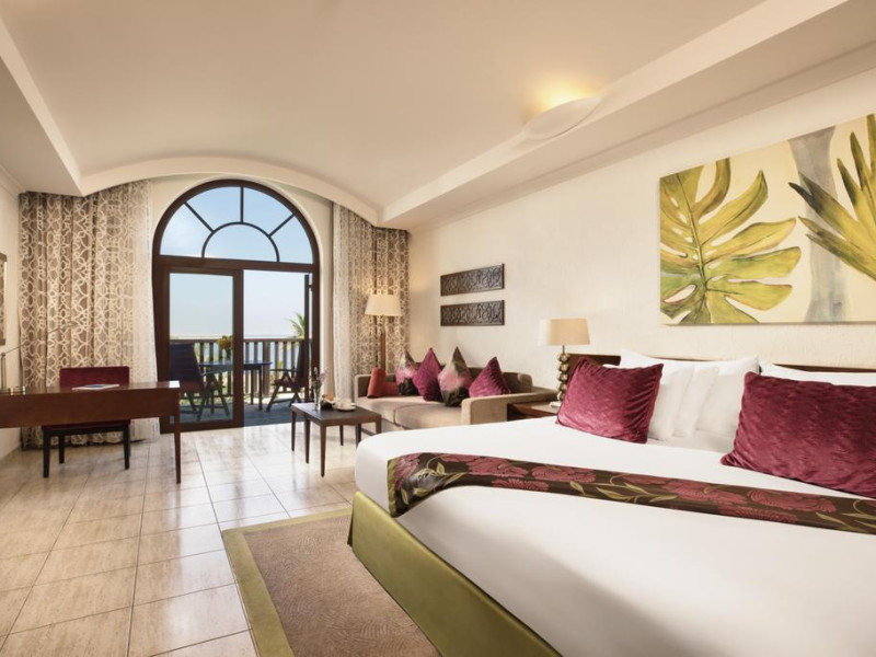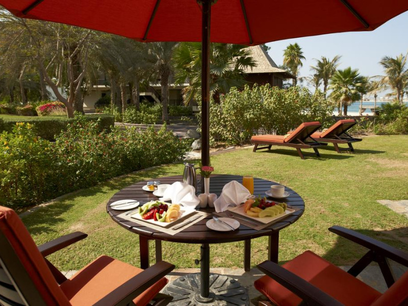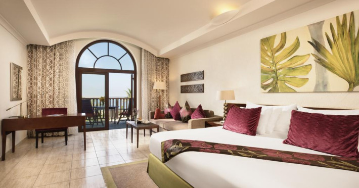 Toate suitele de la JA Palm Tree Court au TV LCD, DVD player, cabină de duş separată, cadă şi balcon spaţios sau terasă privată cu grădină. Unele beneficiază de acces direct la plajă şi la Golful Arabiei. Suitele Royal Jasmine includ beneficii gratuite precum serviciu de transfer de la/la aeroport, acces la lounge şi la alte activităţi, iar oaspeţii cazaţi în suitele de lux din The Residence au la dispoziţie în plus un serviciu de majordom privat şi servicii de babysitting gratuite.