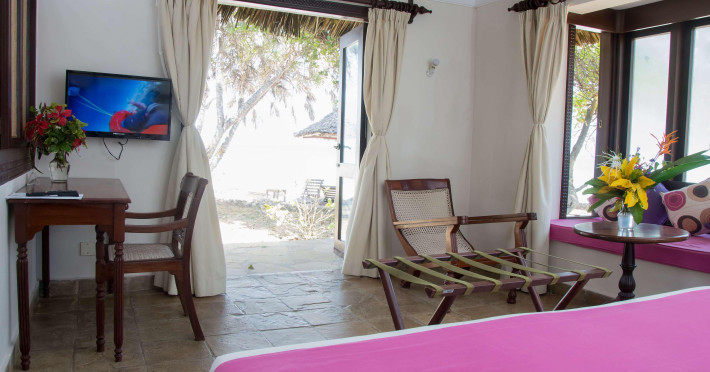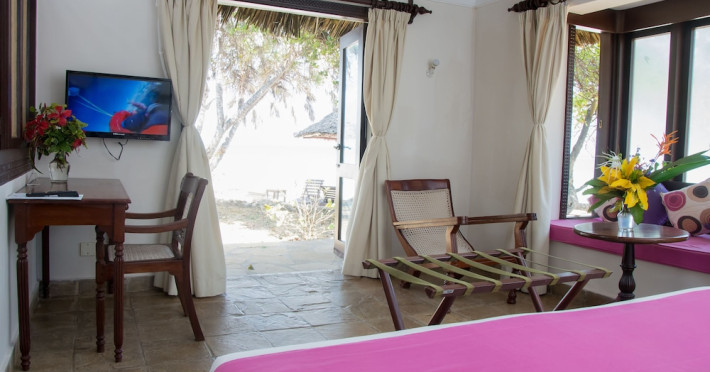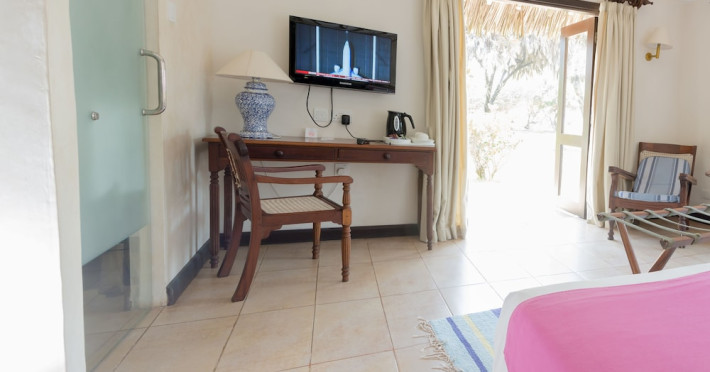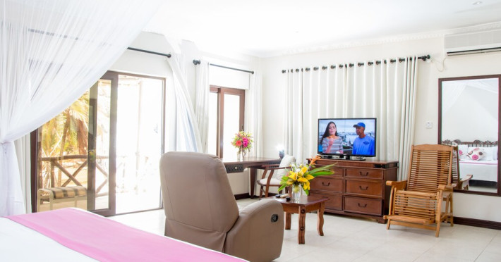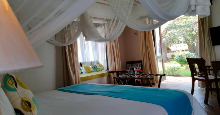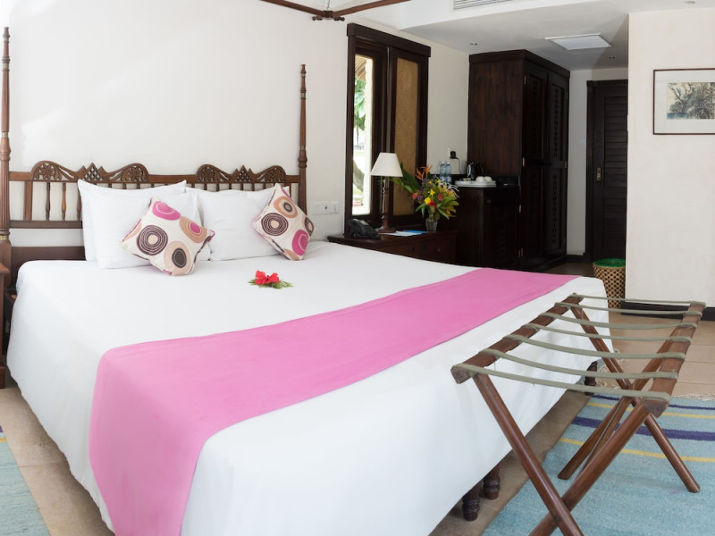 Located on the white sands of Diani Beach, the Indian Ocean Beach Resort offers a Swahili-themed experience. Guests can enjoy a private beach, an outdoor pool, and a full-service spa with massages and body treatments. The resort features multiple restaurants and bars, including a beach bar and a poolside bar. Amenities include a 24-hour reception, currency exchange, a kids' club, conference facilities, laundry service, complimentary wired and wireless internet access, concierge services, and babysitting (surcharge). Airport transportation, taxi, car hire and shuttle services are available. Each room is equipped with air conditioning, an en suite bathroom with a shower, a hairdryer, an in-room safe, a telephone, satellite TV, a minibar, and a furnished balcony or terrace. Complimentary breakfast is included. Onsite parking is complimentary. The JACARANDA INDIAN OCEAN BEACH RESORT SOUTH COAST is a Full Service, Tourist hotel. The nightlife/restaurants are easily accessible by taxi or bus from the hotel.