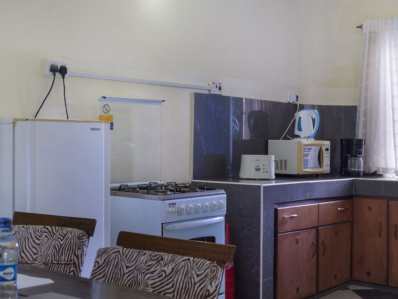 Located in Mombasa, Jacyjoka Apartments Nyali offers air-conditioned rooms with kitchens featuring refrigerators and ovens. Guests can enjoy complimentary Wi-Fi, flat-screen TVs with cable, desks, and daily housekeeping. The aparthotel features an outdoor pool, a restaurant, a bar/lounge, and offers room service during limited hours. A complimentary cooked-to-order breakfast is served daily from 8 AM to 10 AM. Amenities include laundry facilities, a safe deposit box at the front desk, and free self-parking. An airport shuttle is available for a surcharge. Guests can also enjoy onsite massages and relax in the garden. Nearby attractions include Haller Park, City Mall, and Nyali Beach. Moi International Airport is 17 km away. The Jacyjoka Apartments Nyali is a hotel.