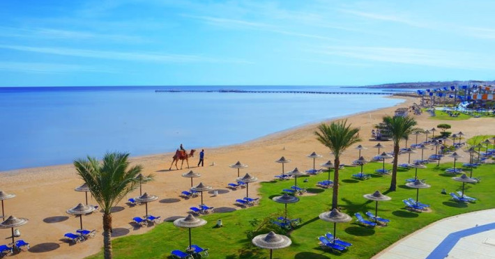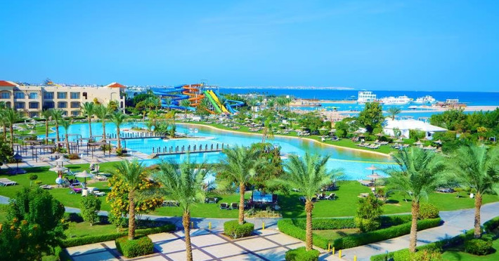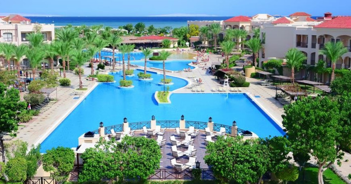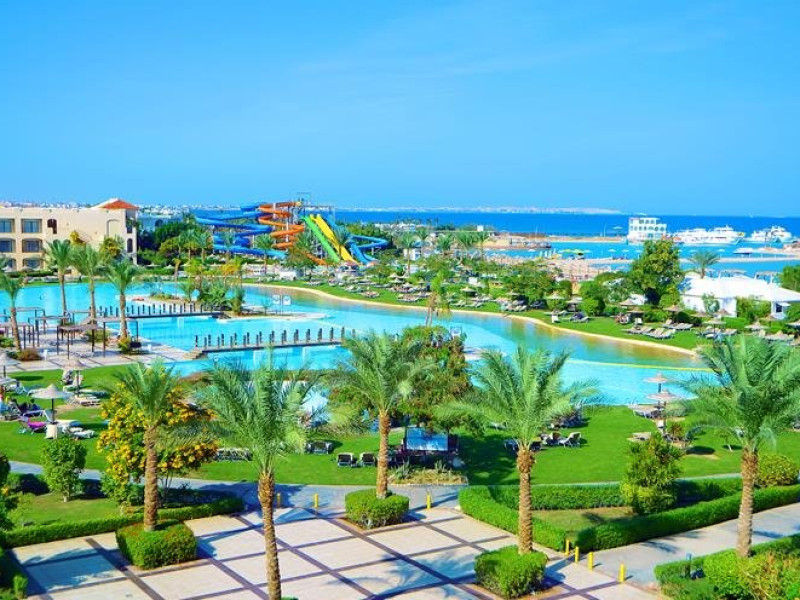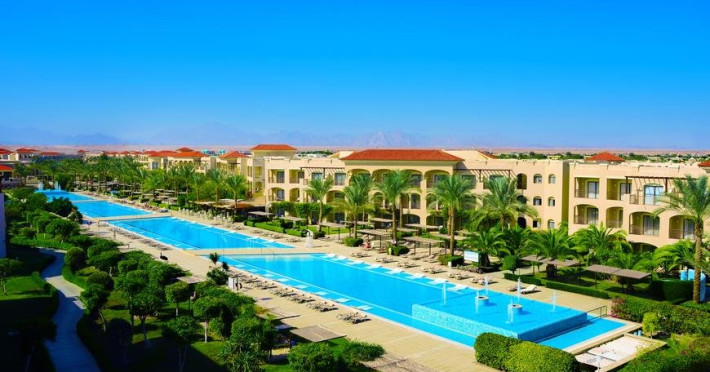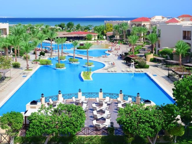 Localizare: Hotelul este situat in partea sudica a statiunii Hurghada. Facilitati hotel: Este un complex care statisface toate nevoile de lux, comfort si extravaganta pentru intraga familie. Hotelul dispune de camera duble superior,superior family room cu sea view , family deluxe swim up, executive suite. Hotelul dispune de 9 restaurante cu specific international si egiptean, 6 baruri, 8 piscine pentru copii,14 piscine pentru adulti, loc de joaca pentru copii, teren de tenis, centru de scufundari, sala de gimnastica, farmacie, shuttle bus pentru deplasarea in Hurghada, club de noapte. Facilitati camere: Toate camerele hotelului sunt de nefumatori, toate camerele sunt dotate cu TV , telefon, minibar, facilitate pentru ceai, au aer conditionat individual, au balcon sau terasa cu gradina. Toate baile sunt echipate cada sau dus, uscator de par si articole de toaleta. Hotelul are urmatoarele tipuri de camere: - duble superior unde se pot caza 2 adulti+1copil , au 35m2, au vedere la piscina sau la mare, sunt dotate cu minibar, TV, aer conditionat, baie private, terasa sau balcon - superior family room cu vedere la mare sau piscina unde se pot caza 2 adulti+2copii, sau 3adulti + 1 copil , au 45m2, sunt dotate cu minibar, TV, aer conditionat, baie private, terasa sau balcon - family deluxe swim up au vedere la piscina , se pot caza 2 adulti+2copii, sau 3adulti + 1 copil , au 50m2, sunt dotate cu minibar, TV, aer conditionat, baie private. - executive suite au vedere la piscina, se pot caza 2adulti+2copii, au 85m2, sunt dotate cu minibar, TV, aer conditionat, baie private.