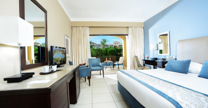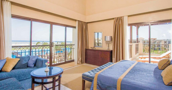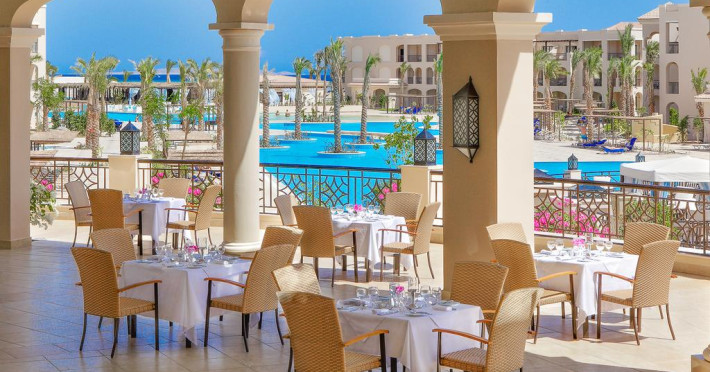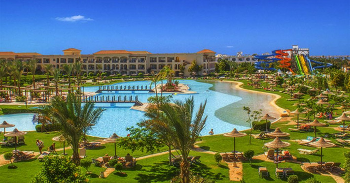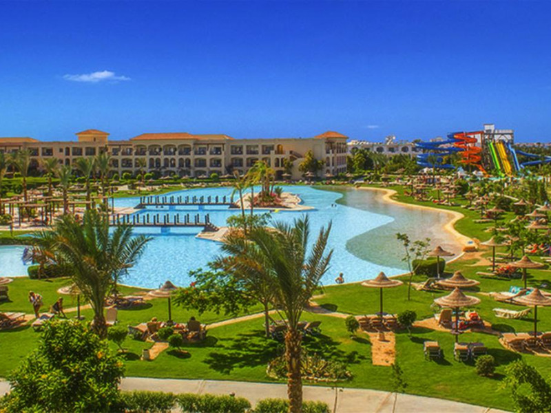Jaz Aquamarina Resort se află în extremitatea sudică a oraşului Hurghada şi are o plajă privată și un club de scufundări. Complexul oferă 20 de piscine, 3 parcuri acvatice și o varietate de restaurante și baruri.