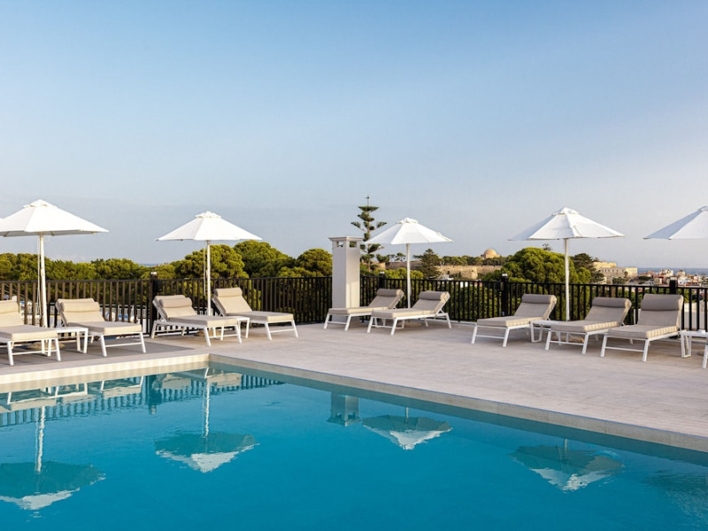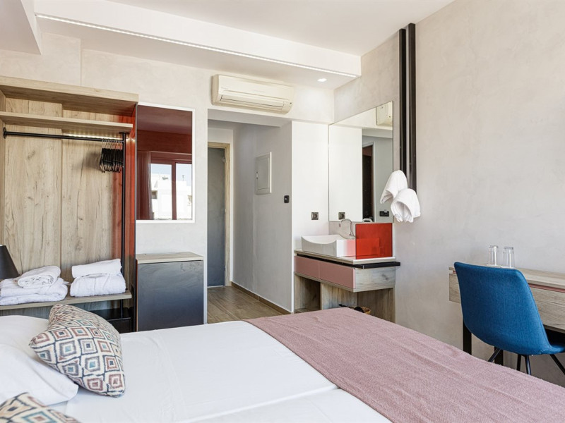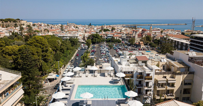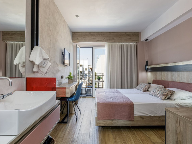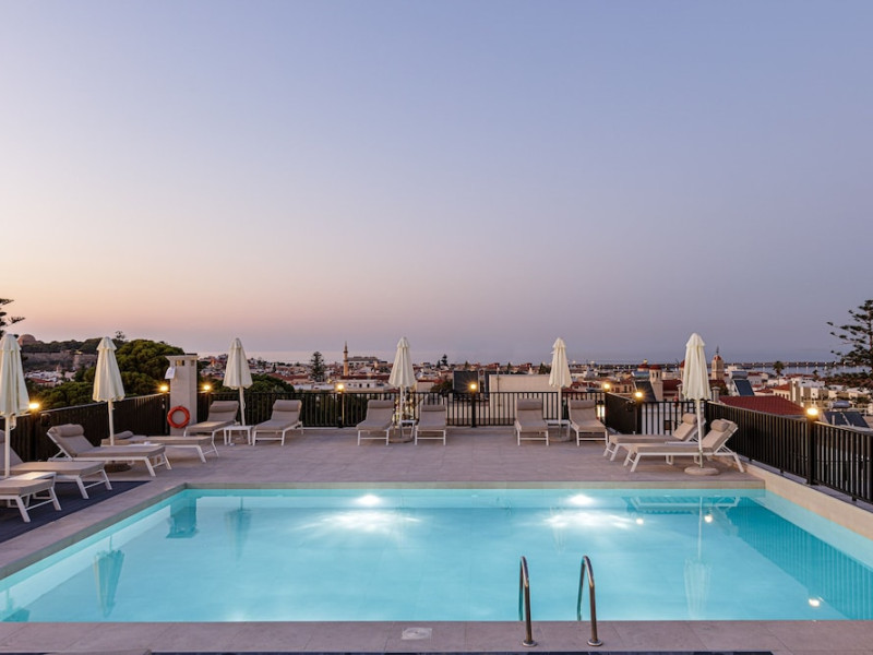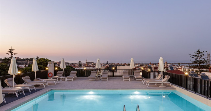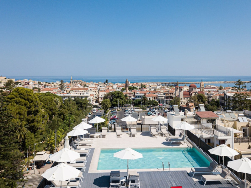 Facilities and services include 24 hour reception, swimming pool, restaurant (buffet style), bar, pool bar, cafe, wireless Internet access, conference room.Rooms feature air conditioning, television, fridge, hairdryer, bathrobe, slippers, telephone, safe (extra charge), wireless Internet access, balcony , double glazing, ironing facilities on request and bathroom.- Please note that some of the above facilities may be closed due to weather / seasonal conditions.Address: Dimitrakaki Str. 8, 74100 Rethymno, Crete, Greece.