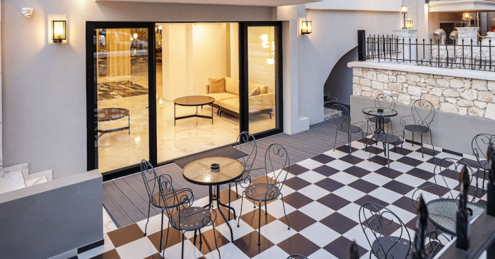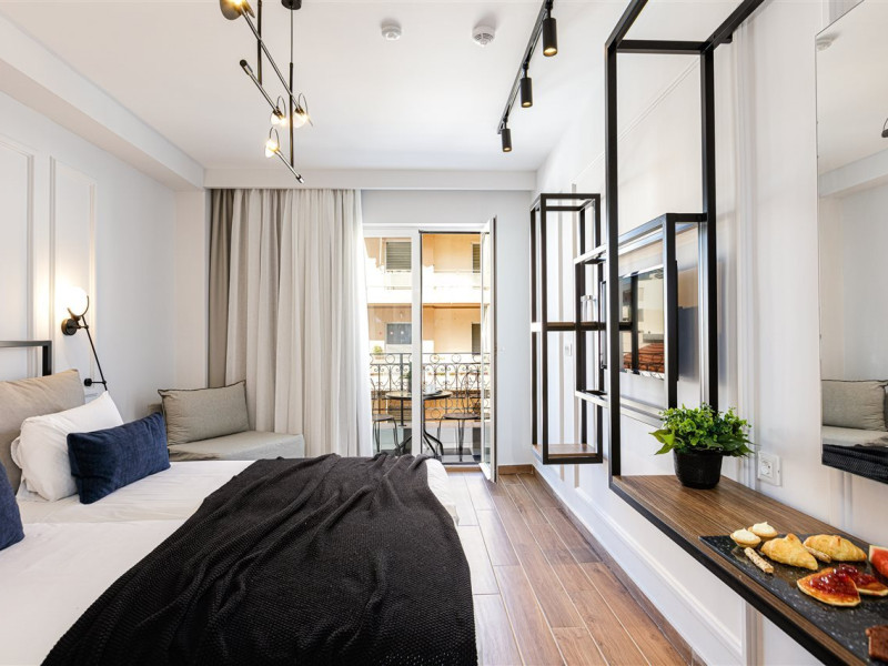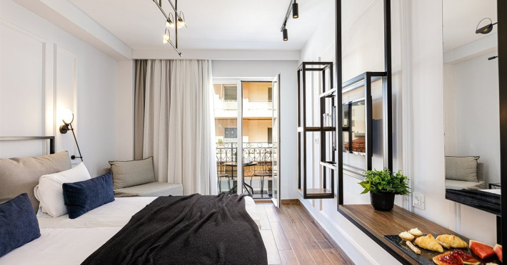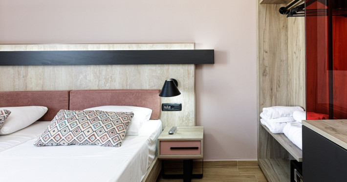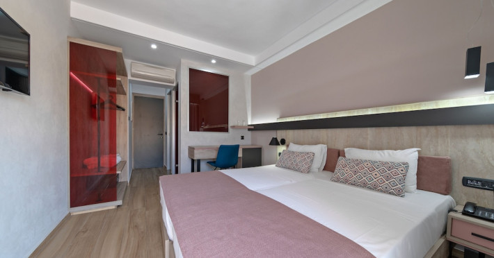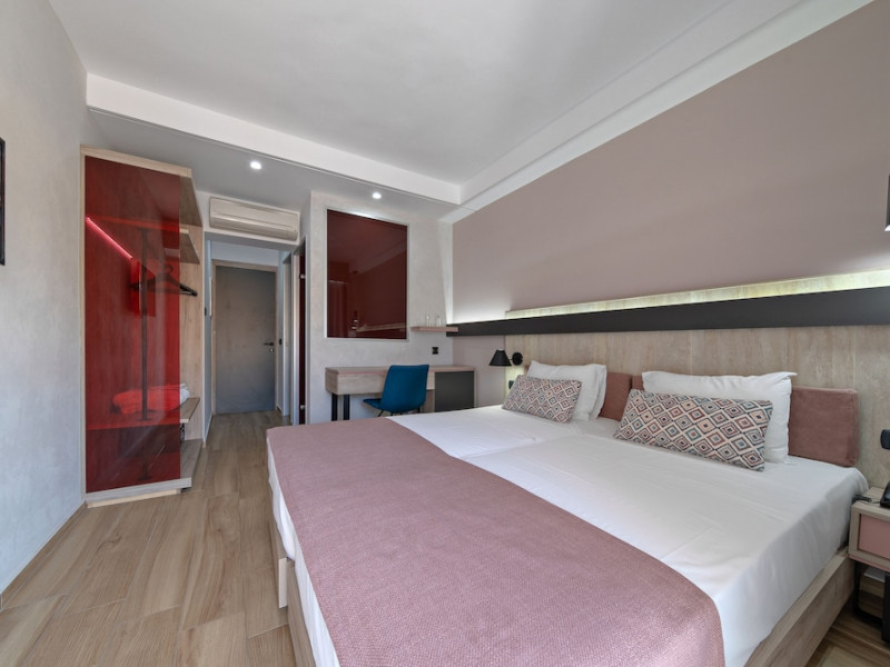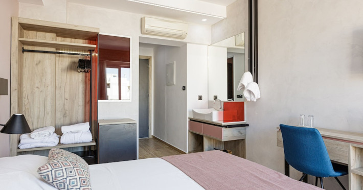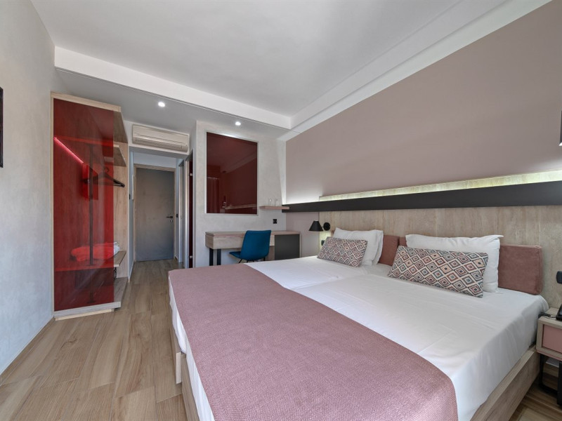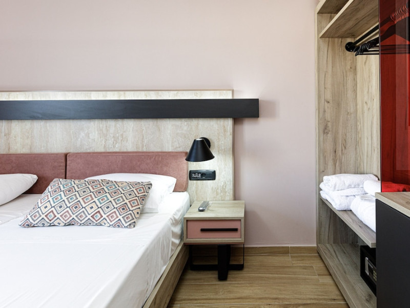 Facilities and services include 24 hour reception, swimming pool, restaurant (buffet style), bar, pool bar, cafe, wireless Internet access, conference room.Rooms feature air conditioning, television, fridge, hairdryer, bathrobe, slippers, telephone, safe (extra charge), wireless Internet access, balcony , double glazing, ironing facilities on request and bathroom.- Please note that some of the above facilities may be closed due to weather / seasonal conditions.Address: Dimitrakaki Str. 8, 74100 Rethymno, Crete, Greece.