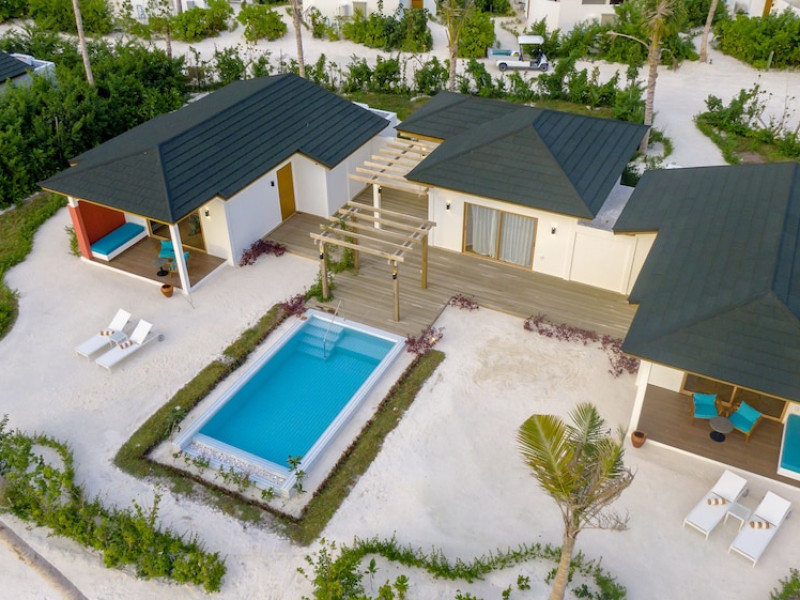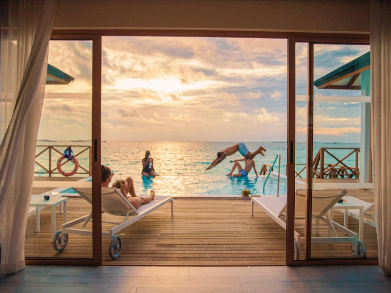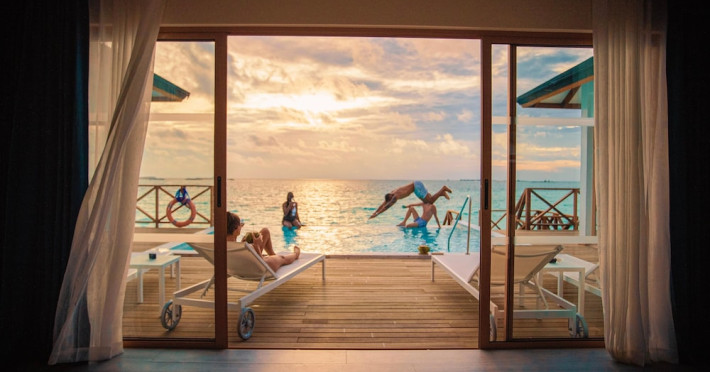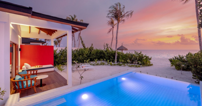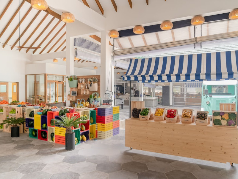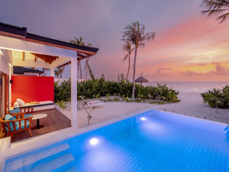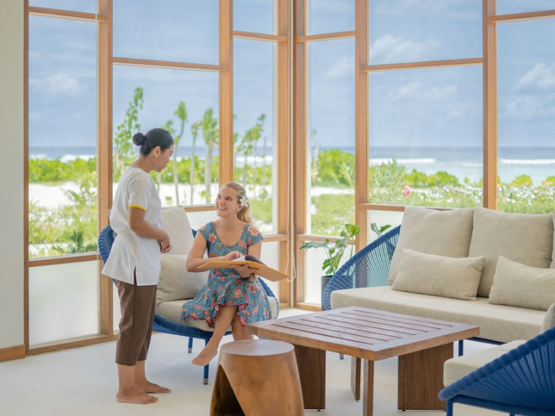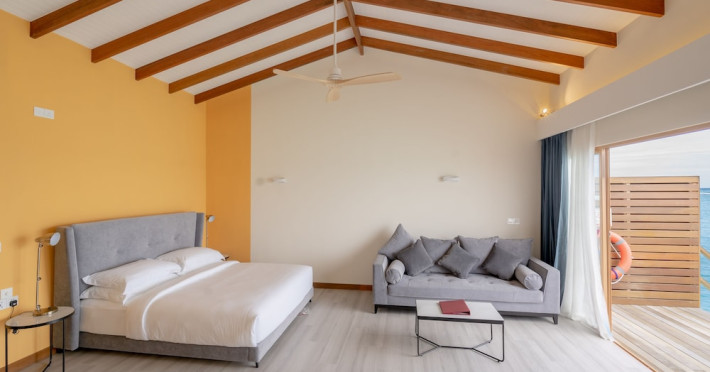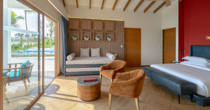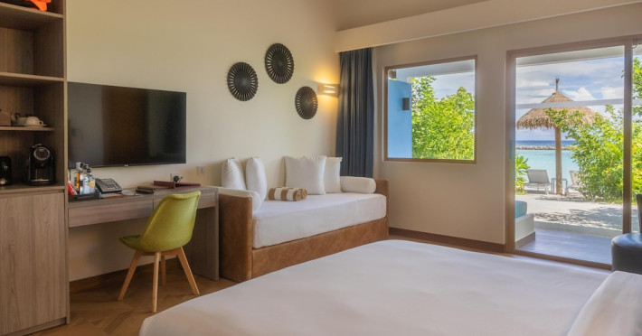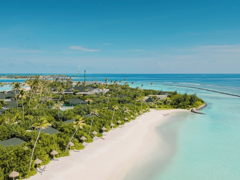 Located by the ocean in Kasanfaru Island, Joy Island offers an all-inclusive experience with access to a private beach. Guests can enjoy international cuisine at one of the 3 restaurants, with 24-hour room service and snacks available at the coffee shop/cafe. The hotel features an outdoor pool, a fitness center, massages, body treatments, and facials. There are 2 bars/lounges and 2 beach bars, and a complimentary buffet breakfast is served daily from 7:30 AM to 9:30 AM. The Art Deco hotel provides complimentary wireless internet access, concierge services, dry cleaning/laundry services, a 24-hour front desk, and luggage storage. The 151 individually decorated guestrooms include minibars, Smart televisions, complimentary wireless internet access, cable programming, safes, and desks. Bathrooms offer complimentary toiletries and bidets. Housekeeping is provided daily. Velana International Airport (MLE) is 40 km away. The Joy Island Maldives is a hotel.