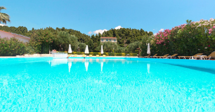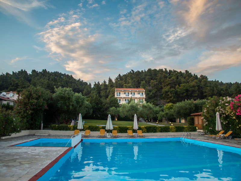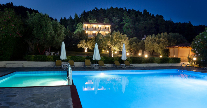 Backed by pine-clad hills and just a short walk from the village, these rooms make a relaxing base for anyone's holidays. Julia Hotel is located at the foothills of the forest and it combines privacy, quietness and proximity to the Fourka village all at the same time. For guests who are more active, walking paths for the mountain start right next to our premises and bicycle rentals are available. Our guests will appreciate the attractive pool, the beautiful and spacious garden and the closeness of the beach.