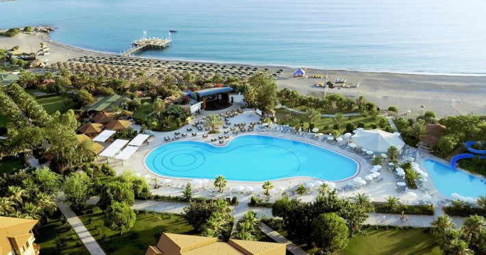 Facilitati hotel: Hotelul ofera oaspetilor sai multiple facilitati: restaurant principal, 3 restaurante a la carte, 4 baruri, patiserie, 2 piscine exterioare, piscina cu 2 tobogane, piscina pentru copii, piscina interioara, centru Spa, sauna, baie turceasca, programe de animatie in timpul zilei si seara, teren de tenis, volei de plaja, aerobic, gimnastica in piscina, fotbal, tenis de masa, centru fitness, darts, discoteca, wi-fi in lobby (gratuit), sala de conferinta, mini club pentru copii (4-12 ani), loc de joaca, mini zoo. Servicii cu plata: restaurantele a la carte, seif, nocturna pentru tenis, lectii de tenis, biliard, sporturi acvatice, masaj si tratamente in centrul spa, servicii medicale, rent-a-car, magazine.