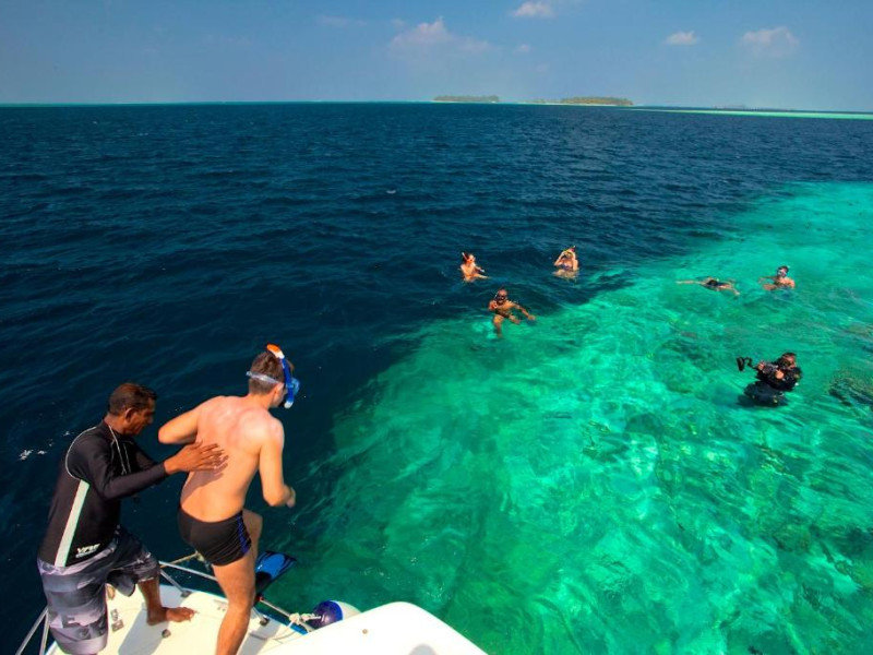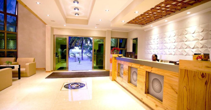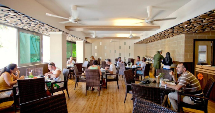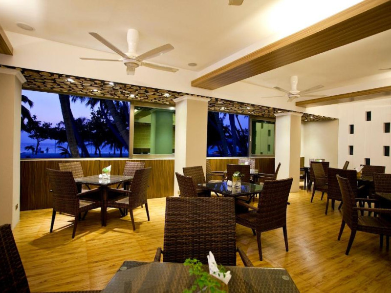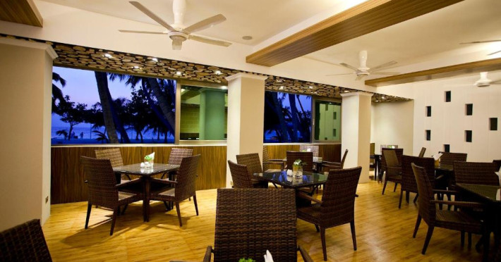 Restaurantul de la parter servește preparate maldiviene și continentale. Gustări și băuturi sunt oferite la cafeneaua de pe terasa in aer liber de pe acoperiș.