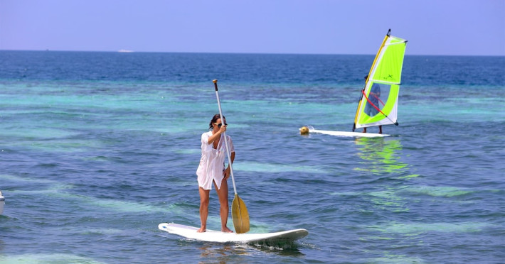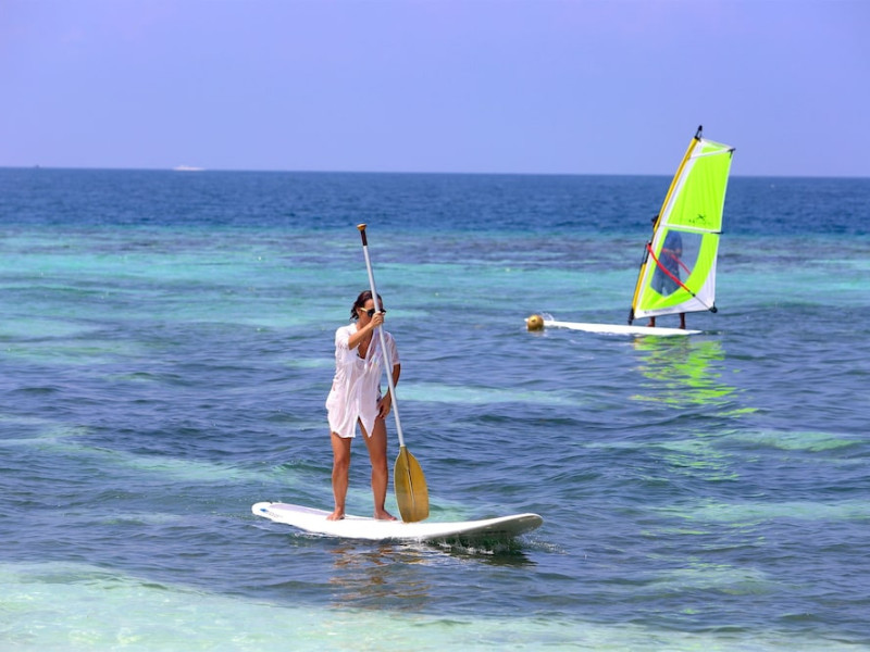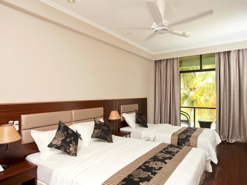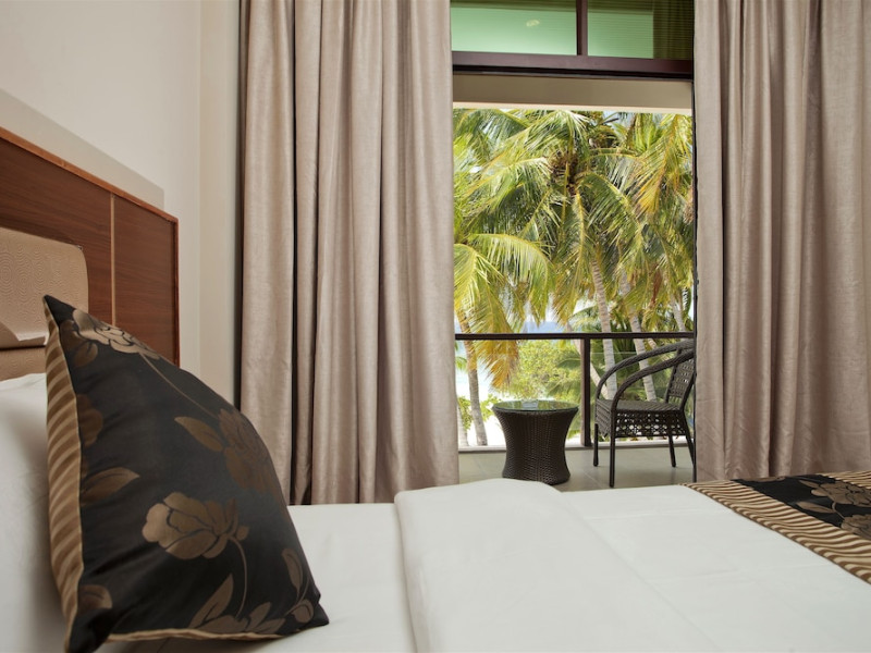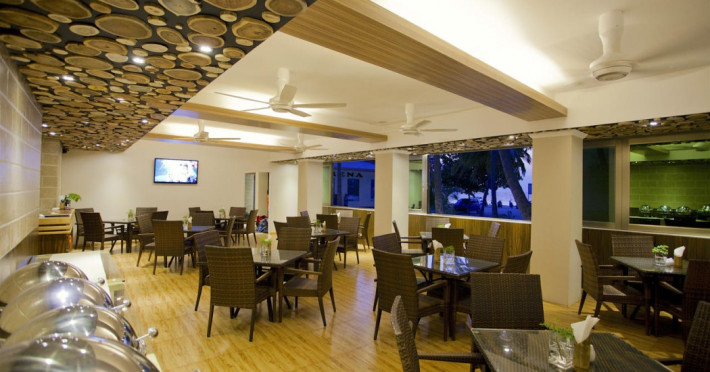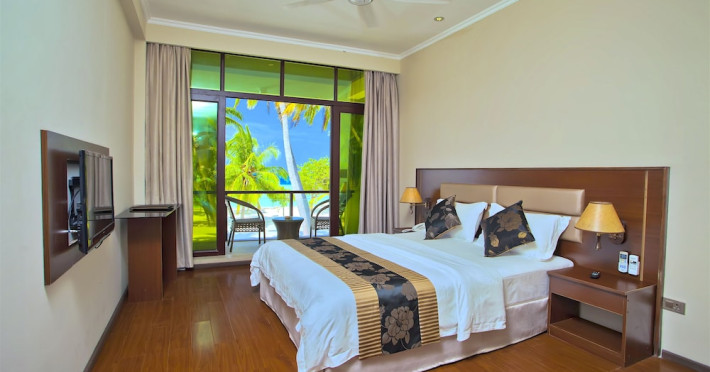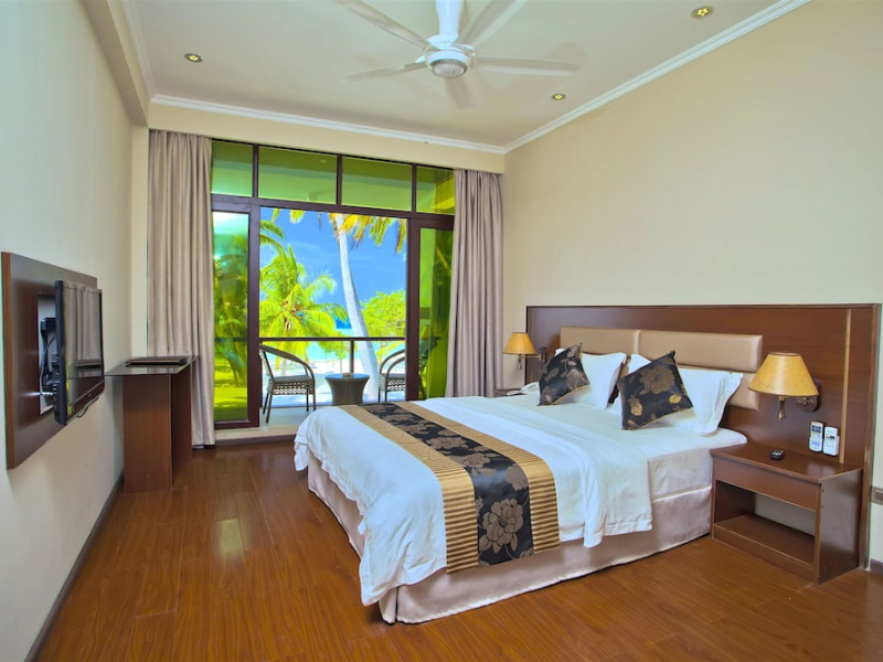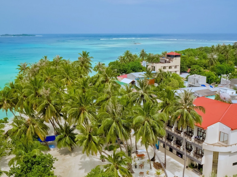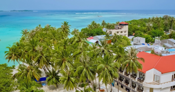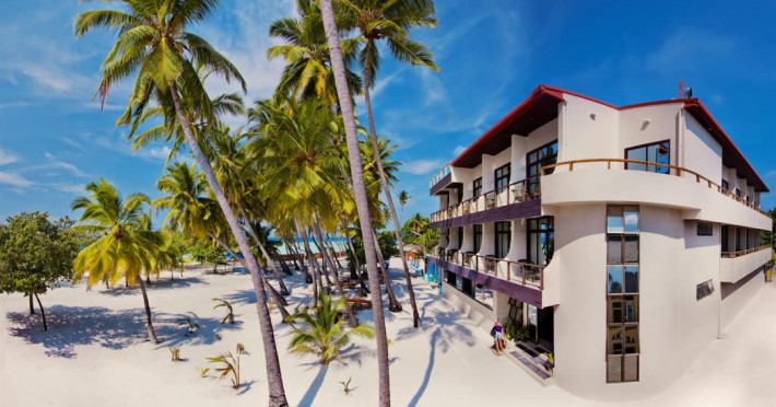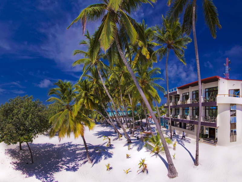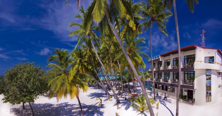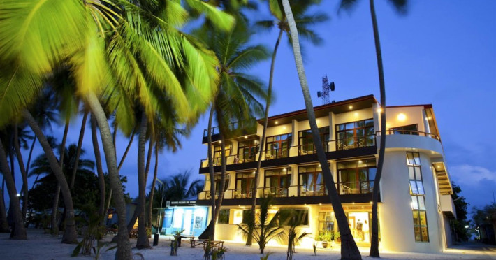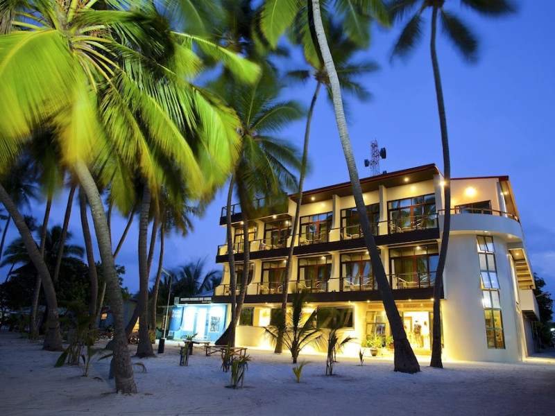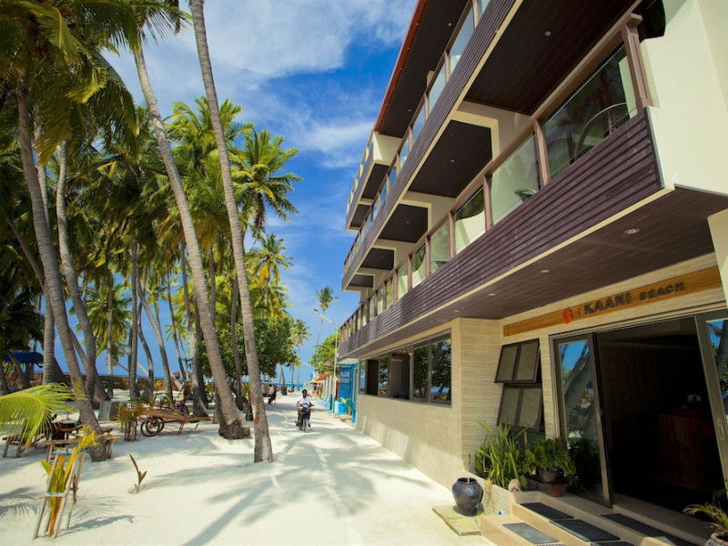 Kaani Beach Hotel, located in Maafushi in the Maldives, offers a convenient beachside location, steps from Water Sports Beach and Bikini Beach. The hotel features complimentary Wi-Fi, a 24-hour front desk, 24-hour room service, express check-in/check-out, and luggage storage. Guest rooms include air conditioning, LCD/plasma screen TVs, and minibars. Some rooms offer private furnished balconies. Onsite amenities include a restaurant, coffee shop/cafe, bar/lounge, massage services, a games room, water sports (motorized and non-motorized), dry cleaning/laundry services, and a rooftop terrace. A complimentary ferry terminal shuttle is provided. Nearby attractions include Maafushi Mosque, Maafushi Reef, and Maafushi Harbor (all within 0.5 km). The Kaani Beach Hotel is a hotel.