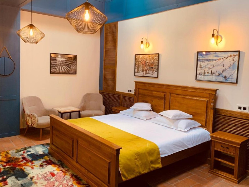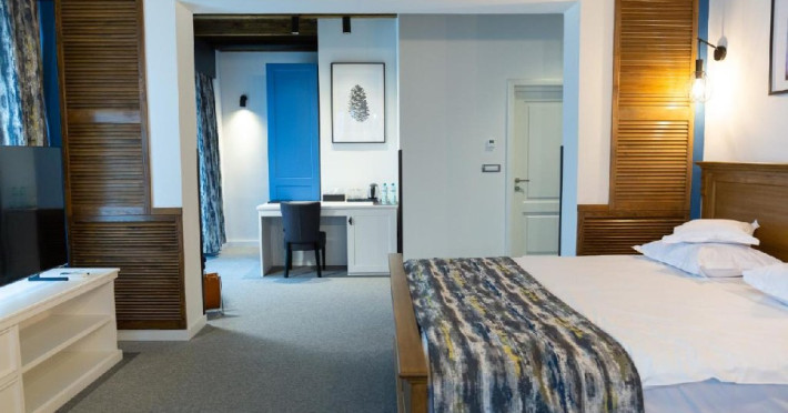 Kaban este un hotel de tip boutique situat in centrul statiunii Vatra Dorna, pe malul raului Dorna. Hotelul dispune de: restaurant, bar, zona de relaxare, terasa, jacuzzi cu salina, sauna, camera de joaca pentru copii, parcare proprie gratuita Camerele Kaban dispun de facilitati moderne. Paturi king size, baie privata cu accesorii moderne si articole de toaleta de lux, minibar cu selectie de produse locale si artizanale, spatii de relaxare. Unele camere au balcoane Camerele Kaban dispun de facilitati moderne. Unele camere au balcoane Dubla fara balcon - suprafata 26 mp, dotata cu 1 pat dublu, mare Dubla mare fara balcon - suprafata 40 mp, dotata cu 1 pat dublu, mare si canapea extensibila Suita family - suprafata 63,7mp, dotata cu 2 paturi duble