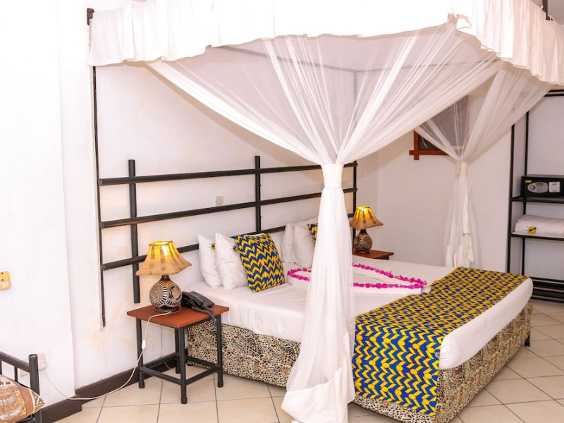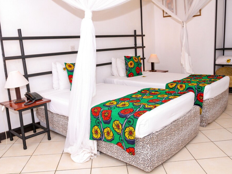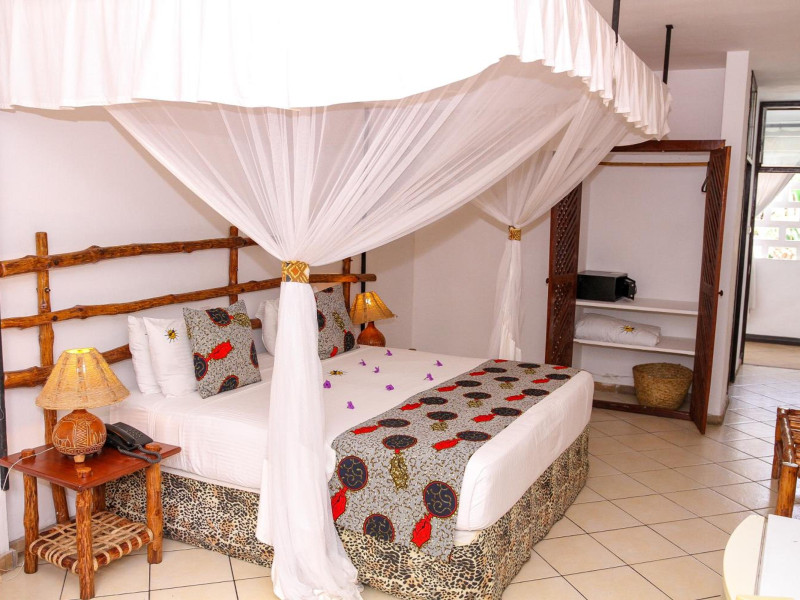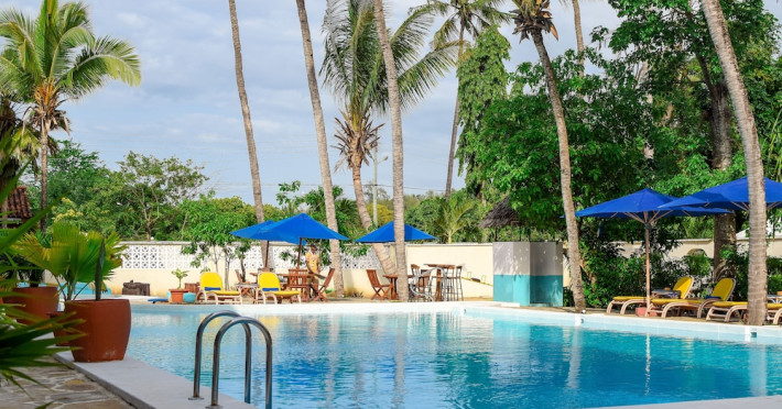 Located in Mombasa, Kahama Hotel Mombasa offers convenient access to Bamburi Beach. The hotel features 32 guestrooms with complimentary Wi-Fi, air-conditioning, mosquito nets, seating and dining areas, flat-screen satellite TVs, safes, private bathrooms with bathtubs or showers, complimentary toiletries, phones, and desks. Guests can enjoy a restaurant, bar/lounge, 24-hour room service, and a complimentary buffet breakfast. Amenities include a terrace, garden, concierge services, a 24-hour front desk, and dry cleaning/laundry services. The hotel also offers an outdoor swimming pool, arcade/game room, picnic area, and barbecue grills. The Kahama's Sports Bar provides live entertainment and sports viewing. A roundtrip airport shuttle is available for a surcharge, and free self-parking is provided. Nearby attractions include Haller Park, Nguuni Nature Sanctuary, and Nyali Beach. Moi International Airport (MBA) is accessible from the hotel. The Kahama Hotel Mombasa is a hotel.
