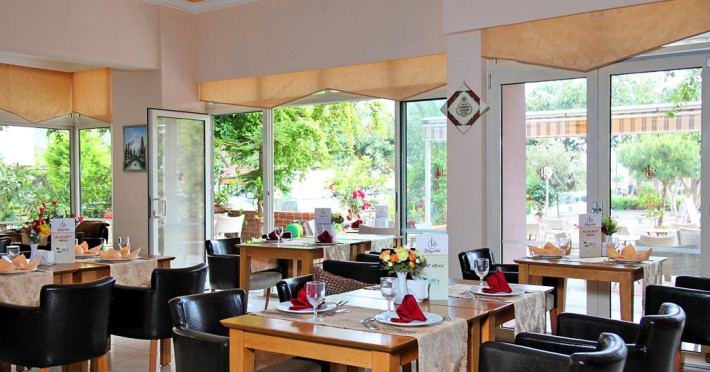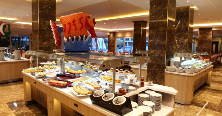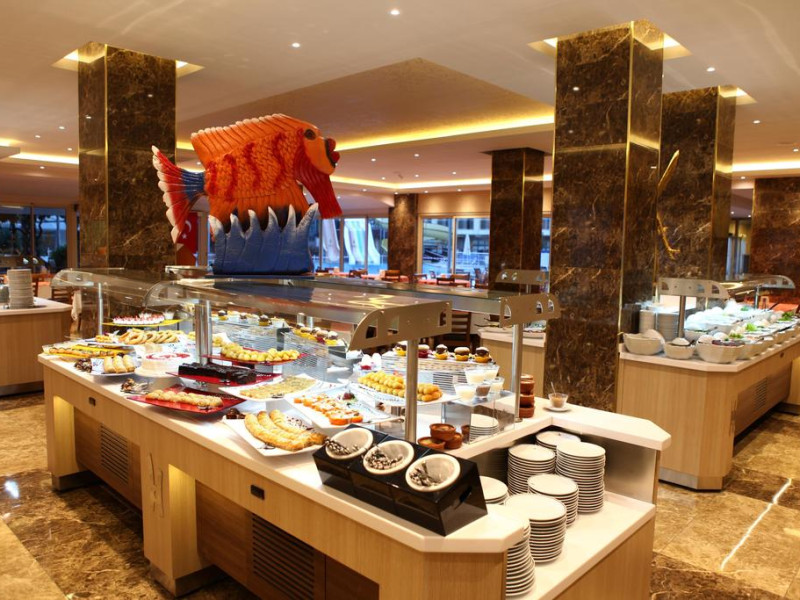 La restaurantul hotelului se servesc specialităţi din provincia Antalya şi din regiunea mediteraneană a Turciei. Mesele se servesc fie în interior, fie în aer liber sau se pot comanda prin room service.