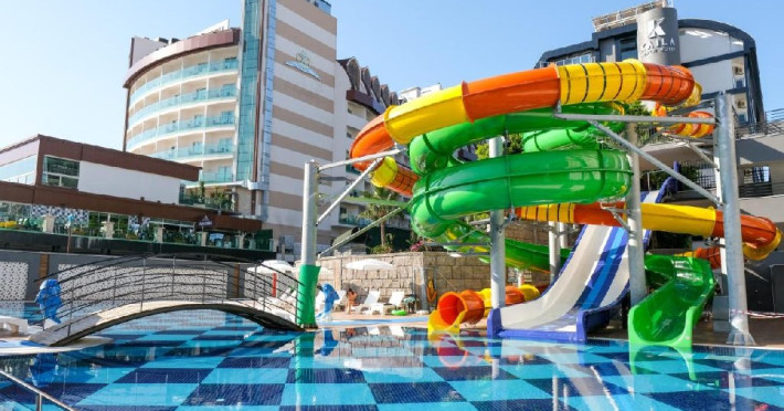 Facilitati hotel: Hotelul pune la dispozitia oaspetilor: restaurant, 2 restaurante a la carte, snack-bar, cafenea, mai multe baruri inclusiv la piscina, 4 piscine (dintre care una interioara), Aquapark, centru Spa, sala fitness, spectacole si muzica live, miniclub si loc de joaca pentru copii, sali de conferinta, sezlonguri si umbrele, tenis de masa, Wi-Fi gratuit in zonele publice.