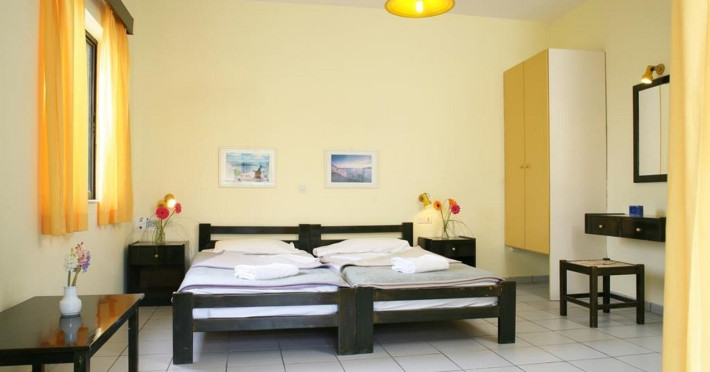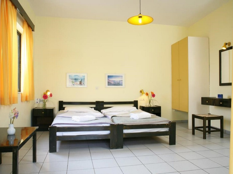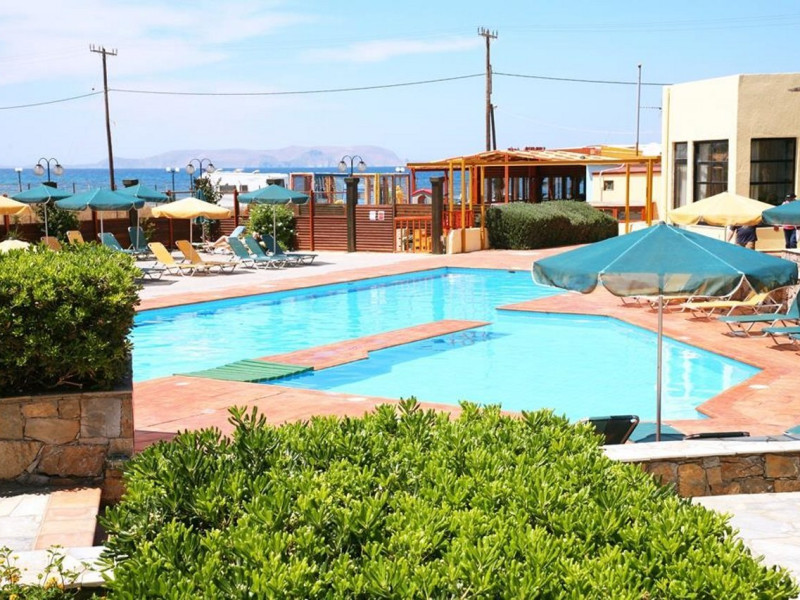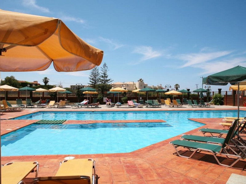Facilities and services include wireless Internet access, restaurant, bar, swimming pool and playground.Apartments feature air conditioning (extra charge), T.V, kitchenette, fridge, balcony/terrace, hairdryer and bathroom.Cleaning: 6 times per week.Change of towels: 2 times per week.Note: Reception with limited opening hours. Please advise flight number and estimated arrival time when booking this hotel.Address: Beach Road Kato Gouves, 70014 Gouves, Crete, Greece.