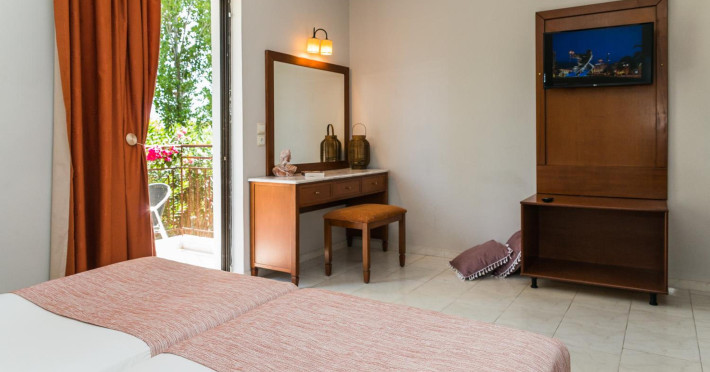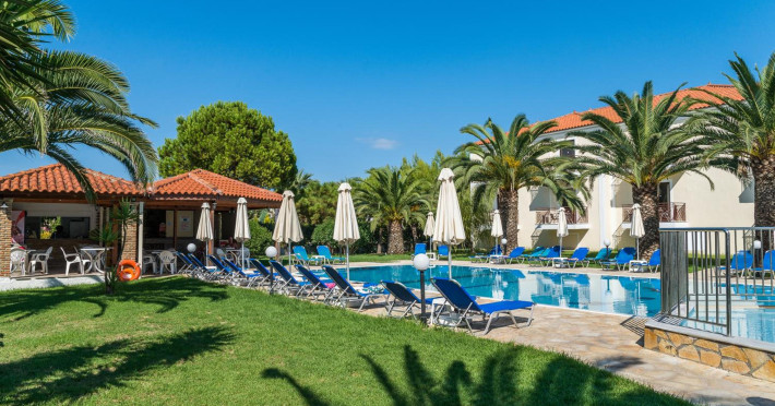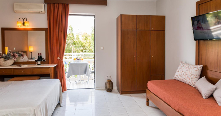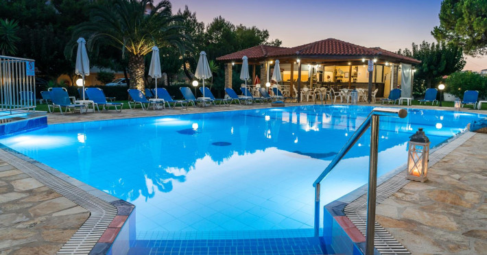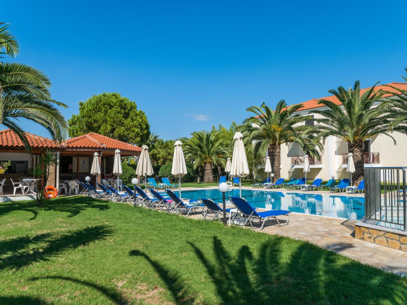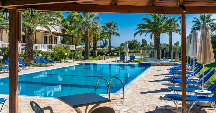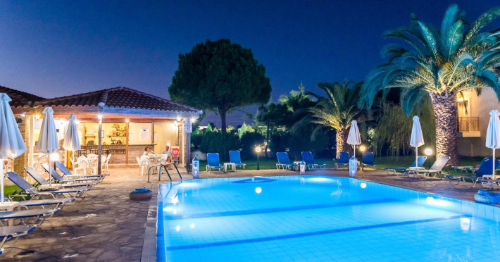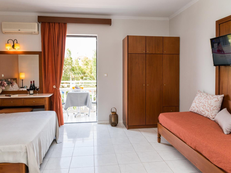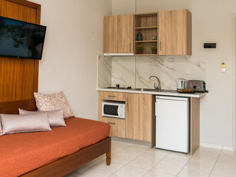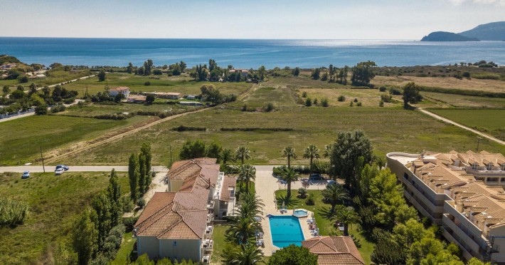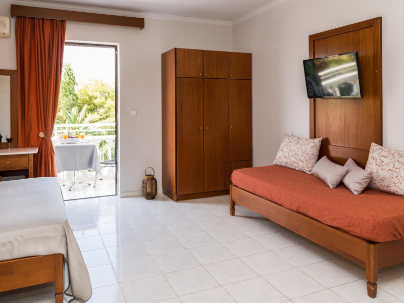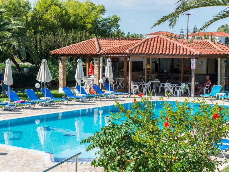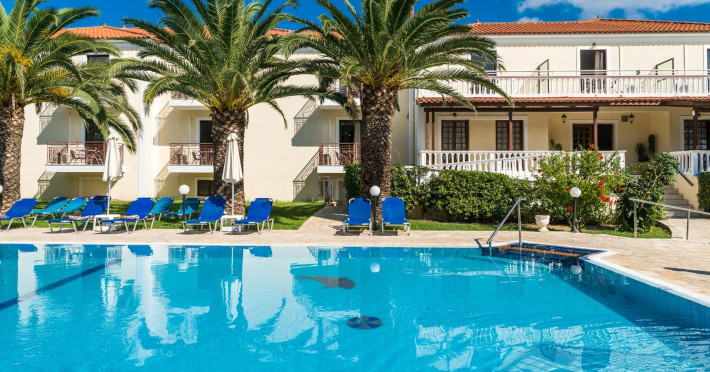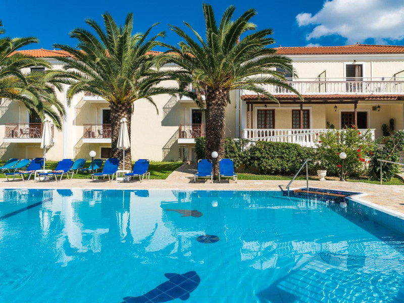 Kalidonio Studios, located in Kalamaki, Zakynthos, features a seasonal outdoor swimming pool, garden, shared lounge, and bar. It offers air-conditioned rooms with a desk, coffee machine, refrigerator, oven, safety deposit box, flat-screen TV, balcony, and a private bathroom with a shower. All rooms include a wardrobe and kettle. Guests can enjoy a sun terrace, complimentary wireless internet, and a snack bar/deli. The accommodation provides a 24-hour front desk, concierge service, and currency exchange. Buffet and Full English/Irish breakfast options are available. Laganas Beach is nearby, and Zakynthos International Airport is 1 km away. Free self-parking is available. The Kalidonio Studios is a hotel.