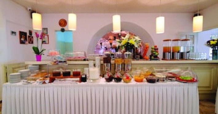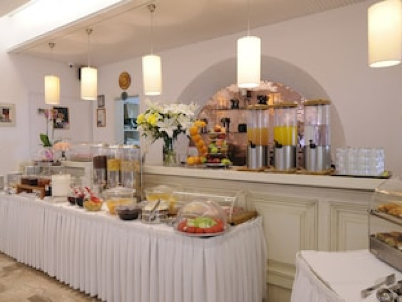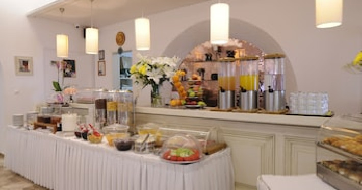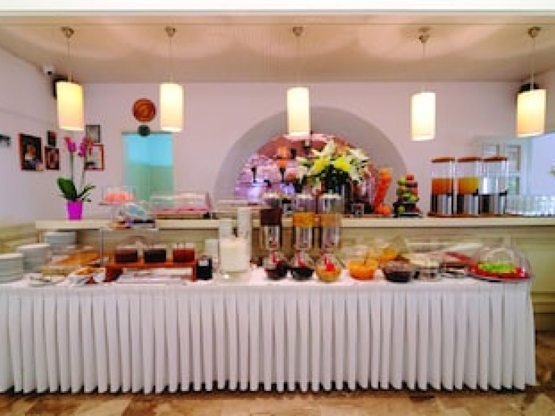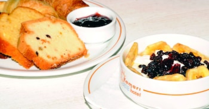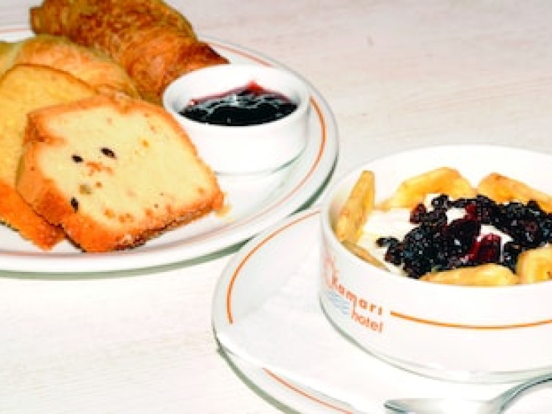 Dining You can enjoy a meal at the restaurant serving the guests of Kamari Hotel, or stop in at the snack bar/deli. Relax with your favorite drink at the bar/lounge or the poolside bar. A complimentary buffet breakfast is served daily from 8 AM to 10:30 AM.