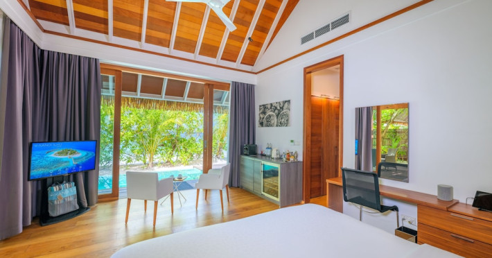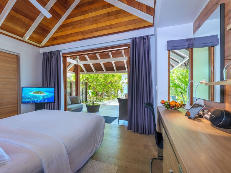 Your spacious room at Kandolhu Island features a flat-screen TV, an iPod dock and a DVD player. Every room includes a king-size bed and a minibar. Your private bathroom offers a shower, bathtub and hairdryer.