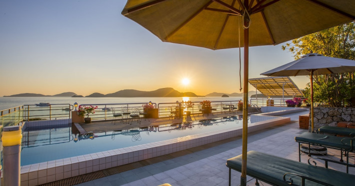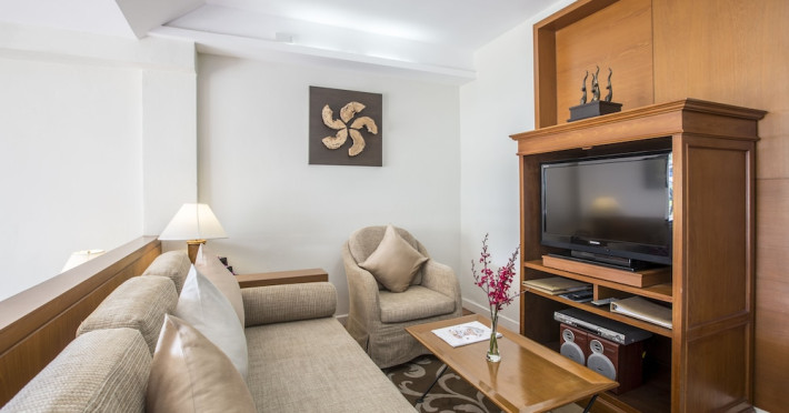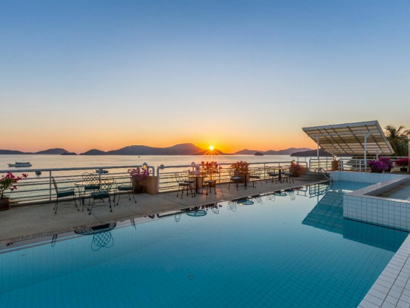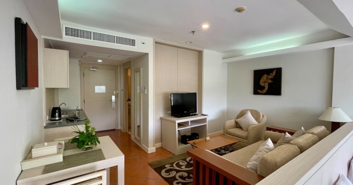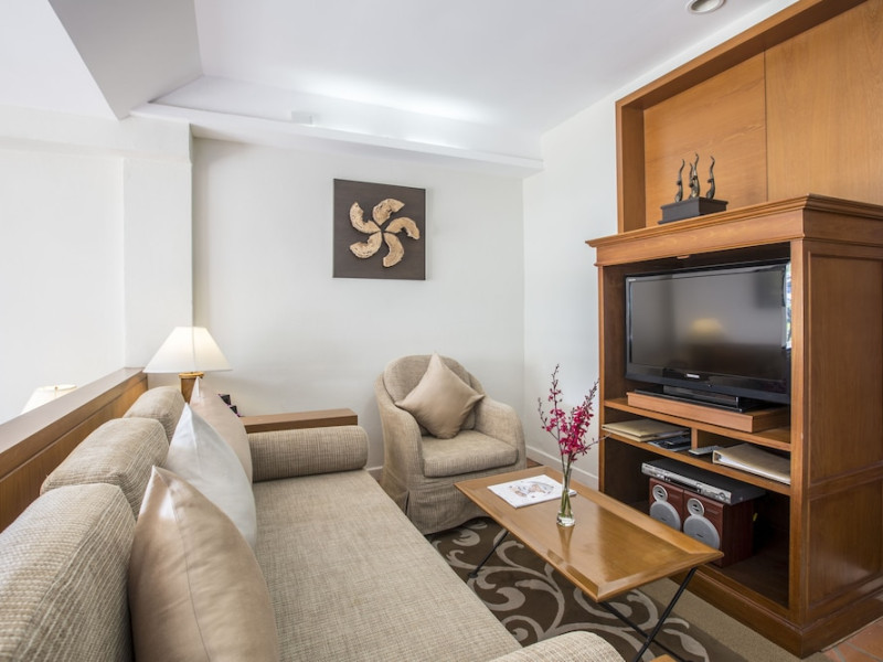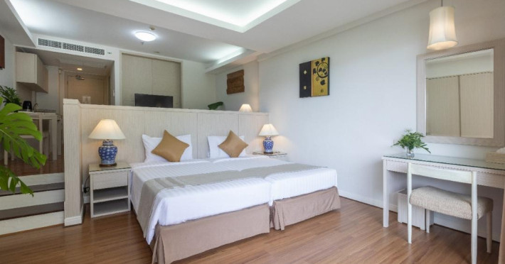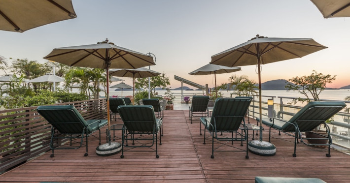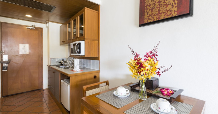 Located on Cape Panwa, near the Phuket Aquarium and Fisherman Village and 15 minutes from Phuket Town, Kantary Bay Hotel, Phuket is a beachfront property combining traditional Thai and modern design. It offers studios, one-bedroom, and two-bedroom suites, all with air conditioning, private balconies, kitchenettes with full-sized refrigerators/freezers and stovetops, and private bathrooms. Guests can enjoy a rooftop pool with panoramic views, restaurants, a bar/lounge, and a coffee shop/cafe. Amenities include free Wi-Fi, a full-service spa with massages and a sauna, a fitness center, a business center, concierge services, laundry service, and room service. Additional services include babysitting (surcharge), complimentary newspapers in the lobby, dry cleaning/laundry services, and an airport shuttle (surcharge). Free self-parking is available. Rooms feature LCD televisions with cable programming. A complimentary buffet breakfast is served daily. Phuket International Airport is approximately 44 km away. The Kantary Bay Phuket is a All Suite, Child Friendly, Colonial Style, Family Style, Full Service, Leisure, Modern, Tourist hotel. The nightlife/restaurants are easily accessible by taxi or bus from the hotel.