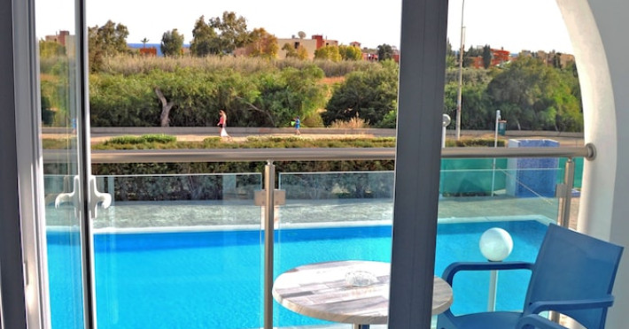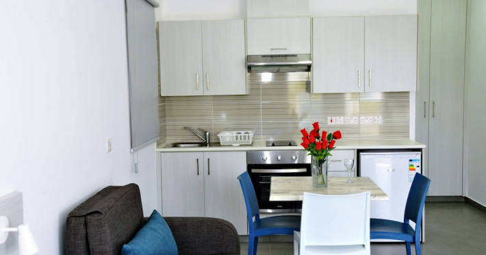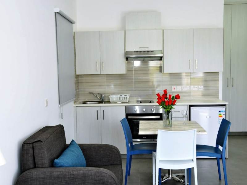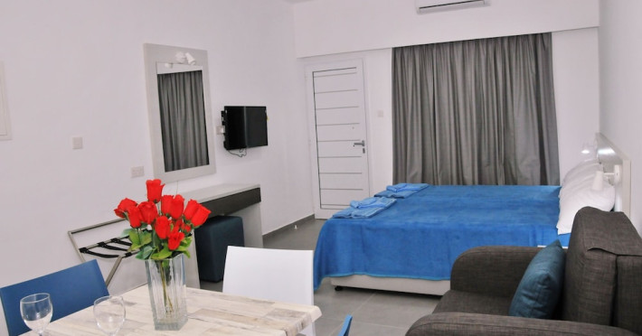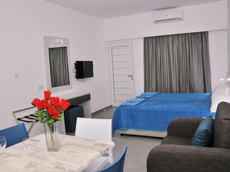 In Ayia Napa (Ayia Napa City Center). With a stay at Kaos Hotel Apartments, youll be centrally located in Ayia Napa, a 3-minute drive from Nissi Beach and 15 minutes from Fig Tree Bay. This aparthotel is 2.4 mi (3.8 km) from Makronissos Beach and 0.3 mi (0.5 km) from Katsarka Beach. Make yourself at home in one of the 35 air-conditioned rooms featuring kitchenettes with refrigerators and stovetops. 32-inch LED televisions with satellite programming provide entertainment, while complimentary wireless internet access keeps you connected. Conveniences include electric kettles, housekeeping is provided daily, and irons/ironing boards can be requested. Grab a bite from the snack bar/deli serving guests of Kaos Hotel Apartments. Unwind at the end of the day with a drink at the bar/lounge or the poolside bar. Take advantage of recreation opportunities such as an outdoor pool or take in the view from a terrace and a garden. This Mediterranean aparthotel also features complimentary wireless internet access, a television in a common area, and tour/ticket assistance.