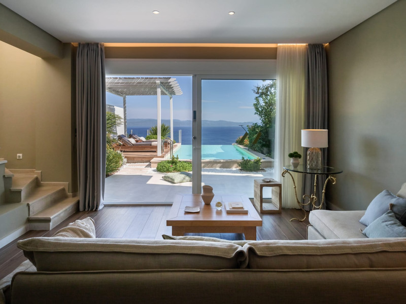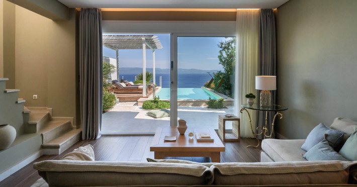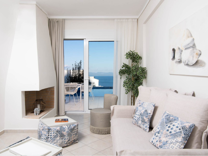 Hotelul ofera acces la internet, o plaja privata, restaurant etc. Apartamente si vile spatioase cu vedere la mare construite intr-un stil traditional grecesc. Combinatia unica intre simplitate si lux.