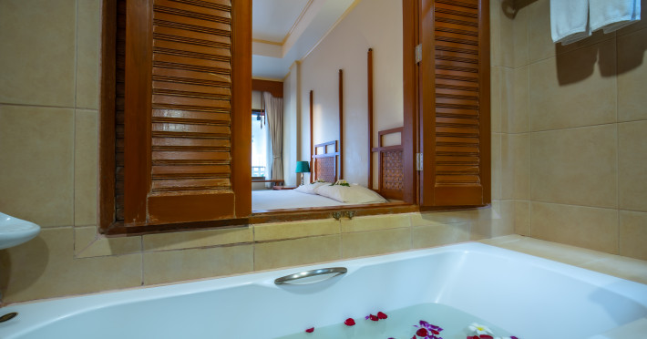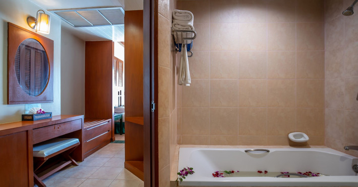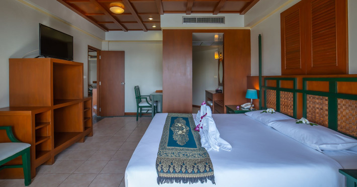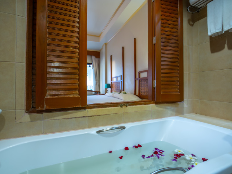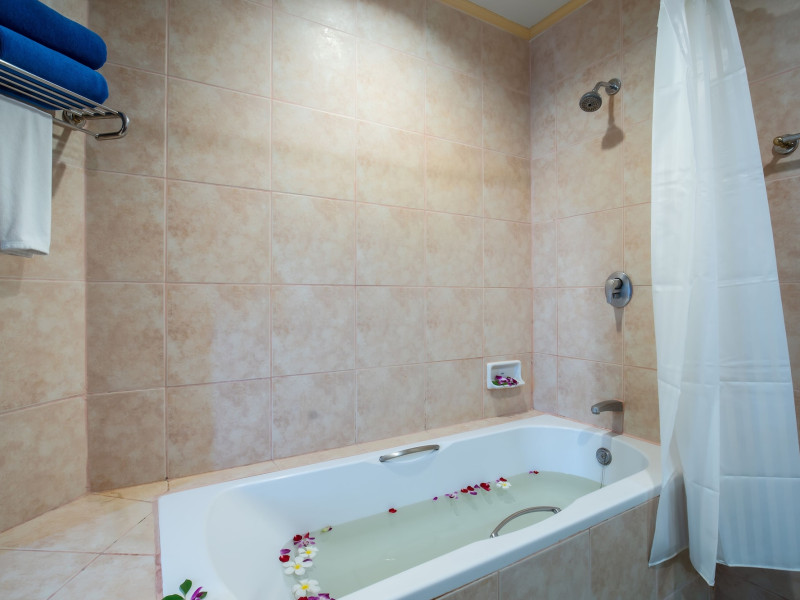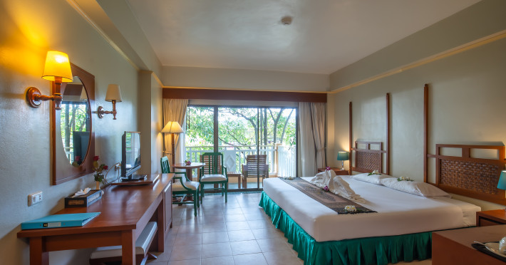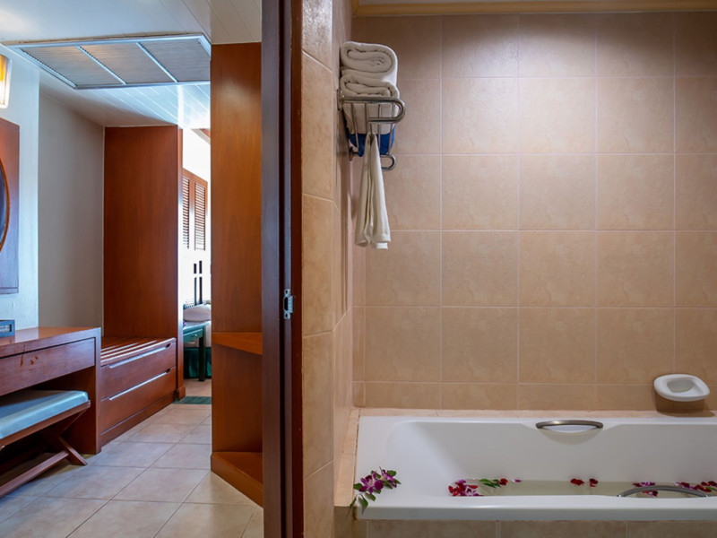 The air-conditioned rooms are designed in a light tropical style and feature private balconies. In-room amenities include satellite TV, a refrigerator, and coffee/tea making facilities. Private bathrooms offer a shower/tub combination, complimentary toiletries, and a hairdryer.