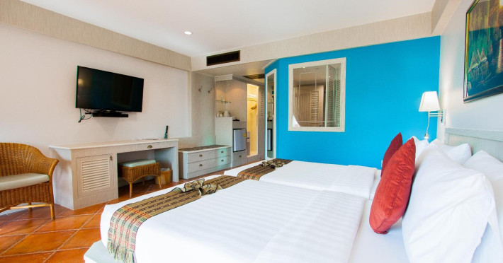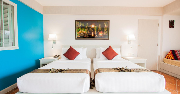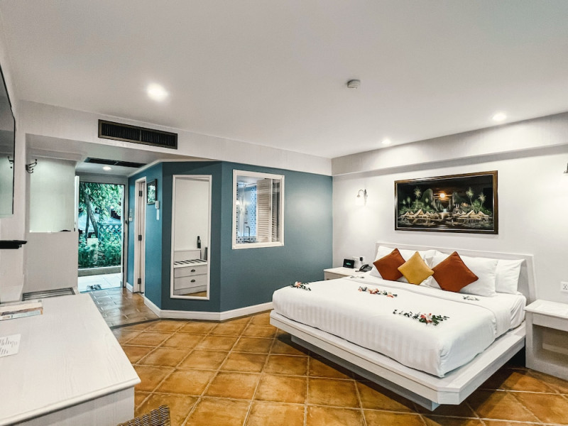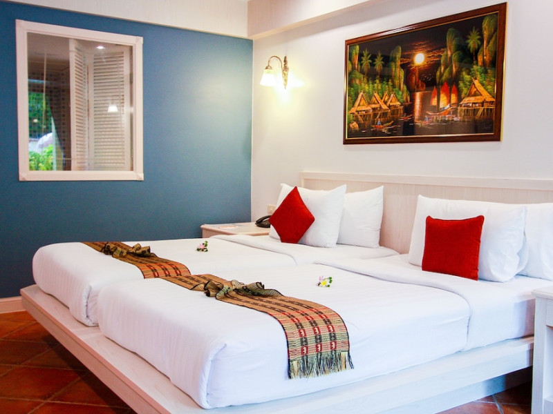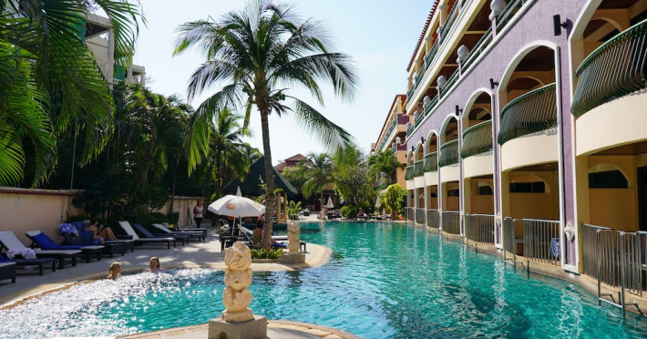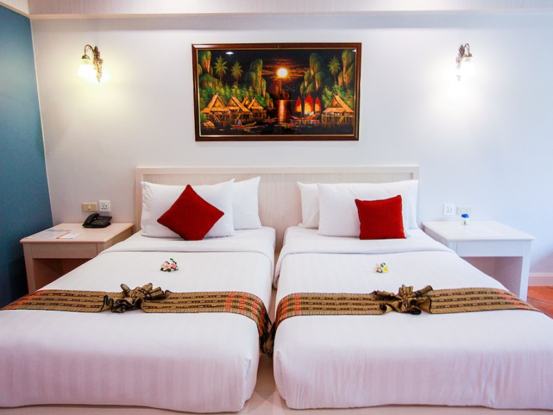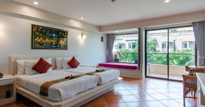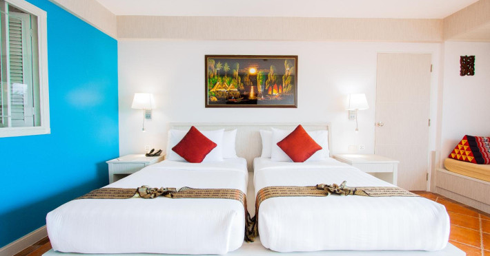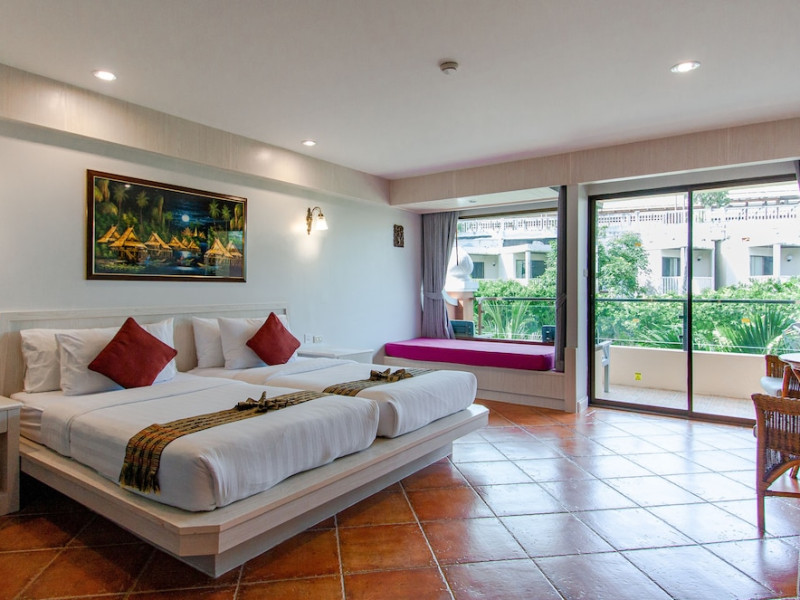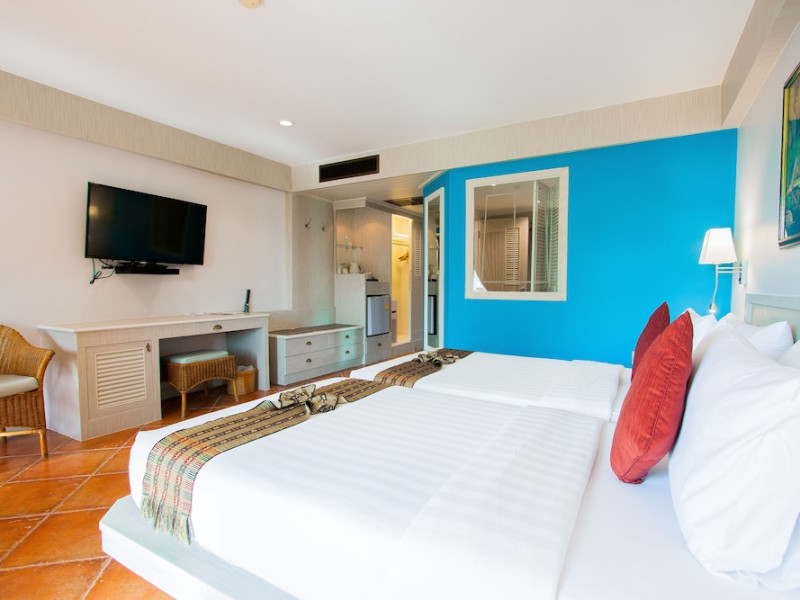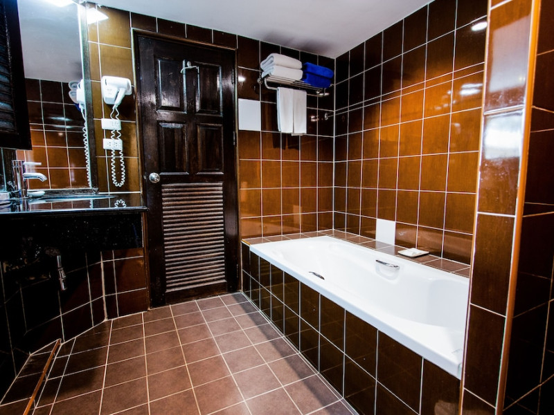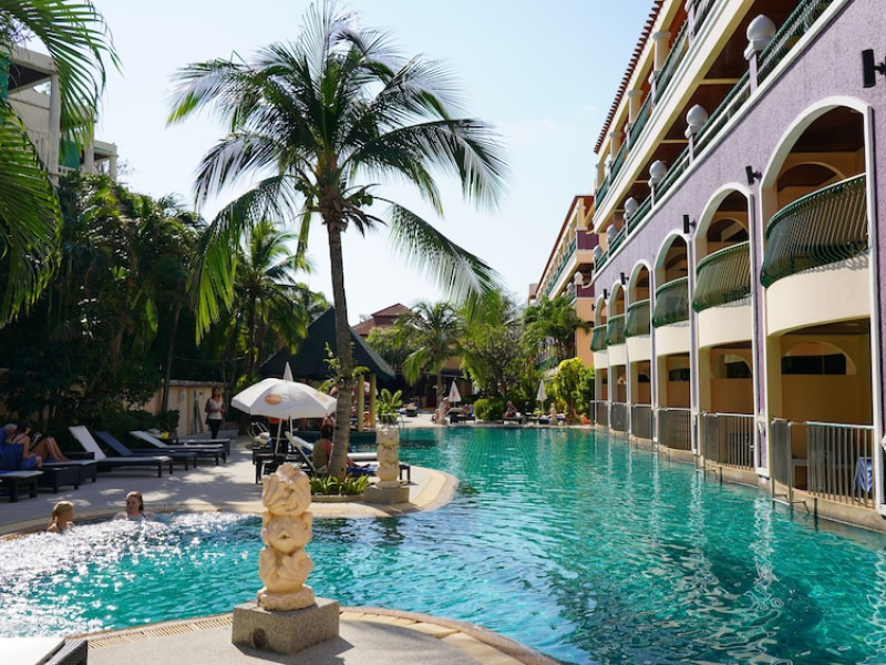 Karon Sea Sands Resort, located on Karon Beach in Phuket, offers a beachfront experience with access to lush greenery and the Andaman Sea. The resort features air-conditioned rooms with private balconies, complimentary wired and wireless internet access, satellite TV, refrigerators, and private bathrooms with separate bathtubs and showers. Guests can enjoy two outdoor swimming pools, a fitness center, and multiple dining options, including Thai cuisine at Tom Yam Kung, Western and Thai cuisine at O'Reilly's Irish Pub, and cocktails with open-air views at Starz Rooftop Bar. Refreshments are also available at the Pool Bar and Lobby Bar. The resort provides a 24-hour front desk, concierge services, luggage storage, dry cleaning/laundry services, and tour assistance. Airport shuttle service is available for a surcharge, and complimentary parking is provided. Karon Beach is steps away, and the resort is within close proximity to Karon Beach Roundabout, Karon Market, and Karon Temple. The Karon Sea Sands Resort is a Leisure, Resort, Tourist hotel. The nightlife/restaurants are easily accessible by taxi or bus from the hotel.