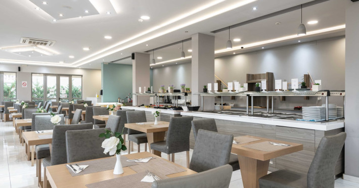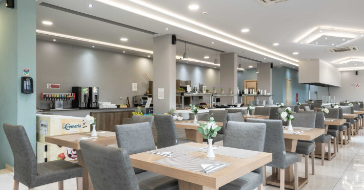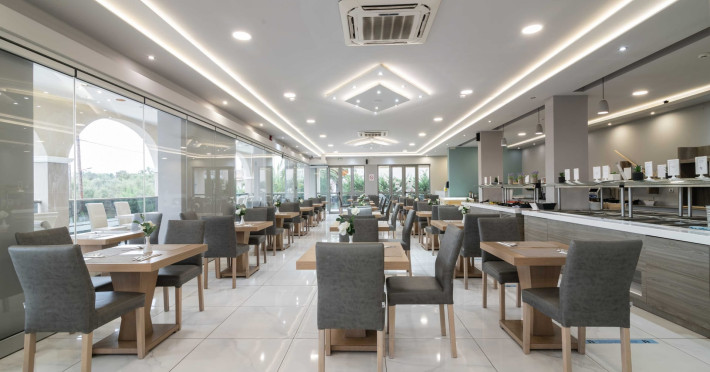 Karras Grande Resort has 3 swimming pools where you can relax throughout the day while enjoying your favorite drink by the pool bar. The favorite spots for our little friends include the kids pool as well as the playground. Our all day restaurant serves Mediterranean cuisine buffet with a variety of options for all tastes.