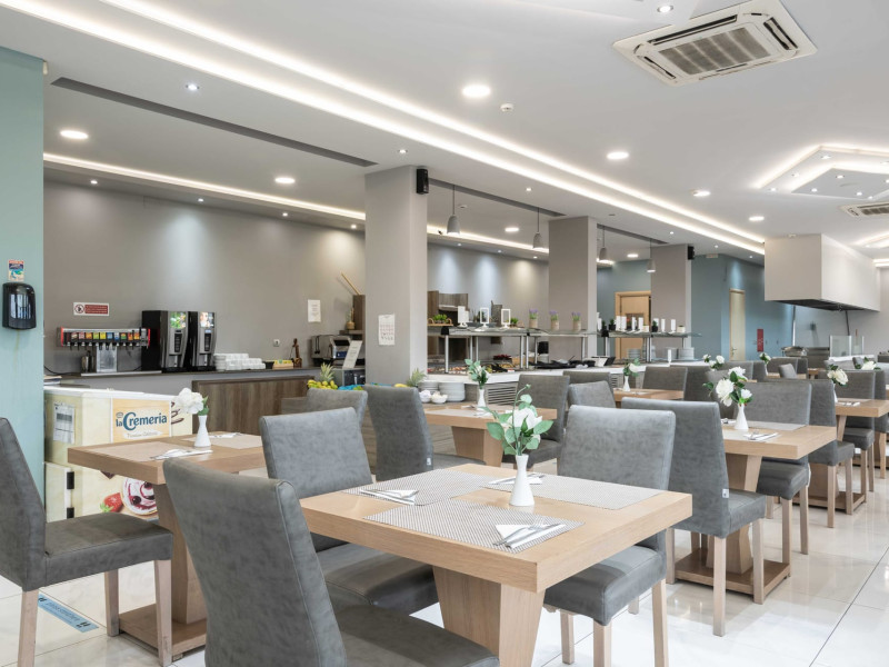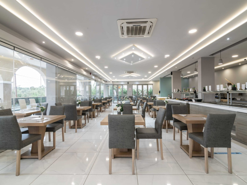 Our a la carte “Bacilico Greco” offers a menu with grill, BBQ and pizza options. Your daily gym does not stop on vacation as the hotel has a fully equipped gym, body & face treatments and a sauna. In the modernly decorated rooms you will find all the amenities for a pleasant and comfortable stay.