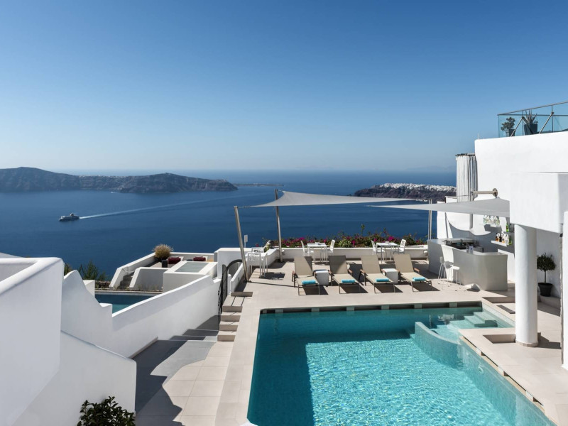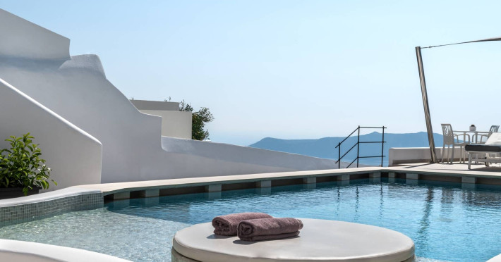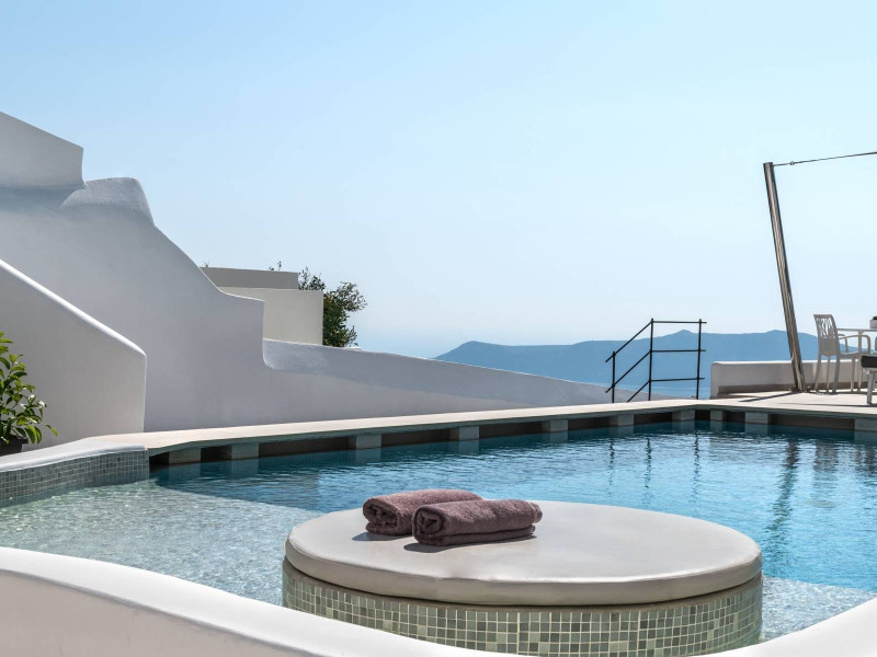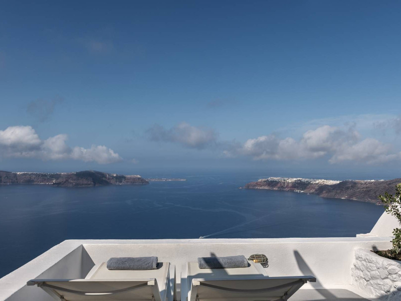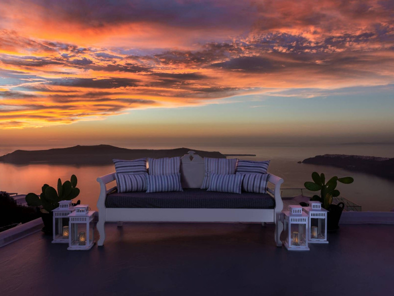 Kasimatis by La Perla will offer you an unforgettable pleasure and an unrepratable reminiscence that will be printed in your memory for ever. Kasimatis by La Perla is situated at the top of the tranquil area of Imerovigli village and built in the traditional local Cycladic style of the island.The window panes doors and the whitewashed walls complemennt the picturesque beauty of the traditional Greek village. The Kasimatis by La Perla offers amazing views of the blue Aegean Sea and the volcanic island of Santorini.