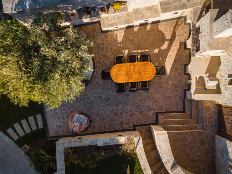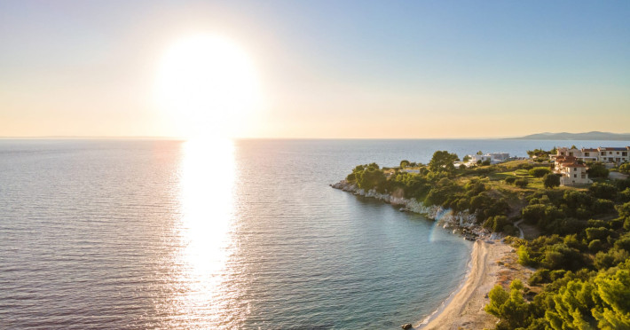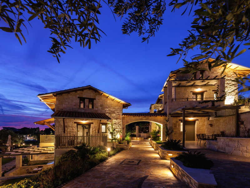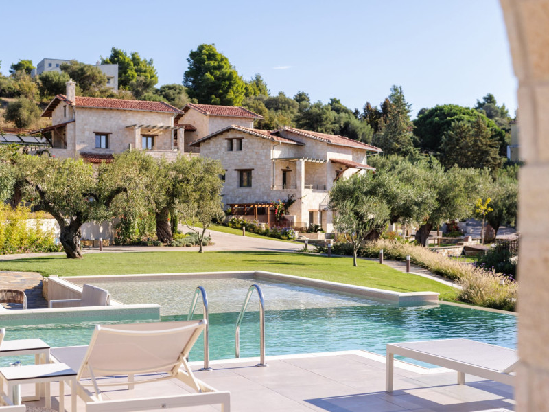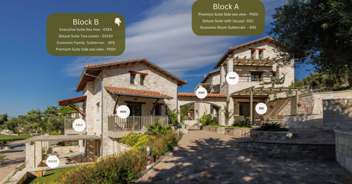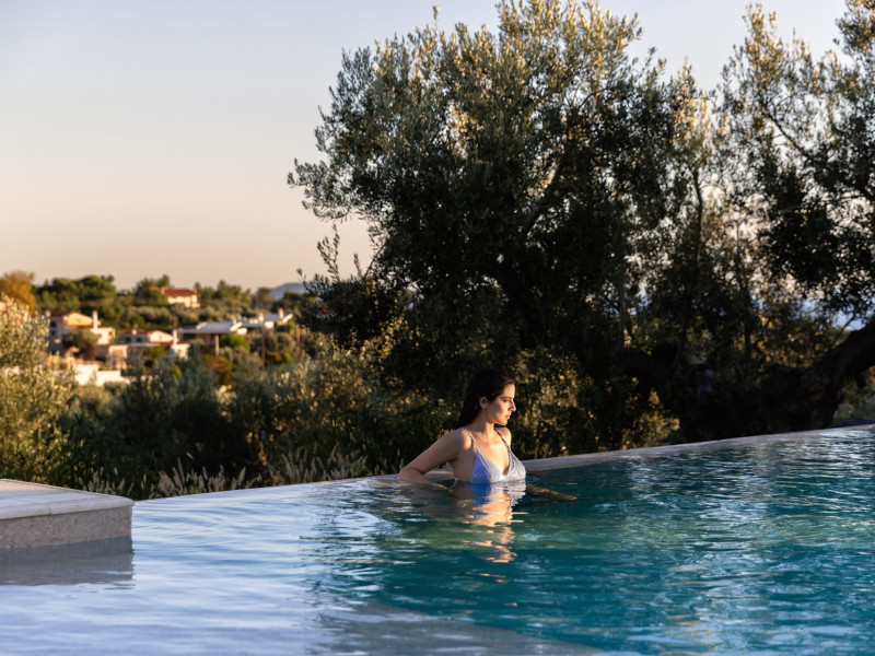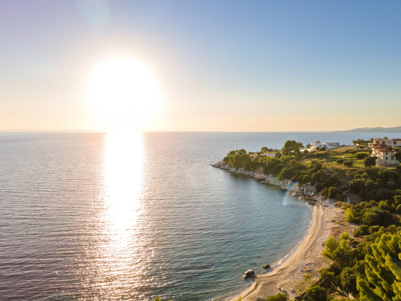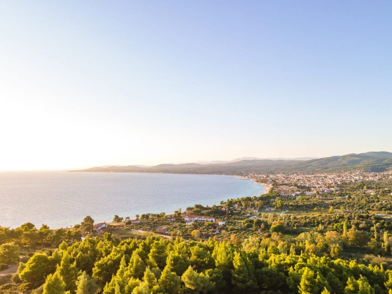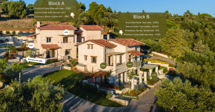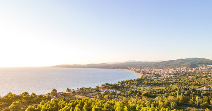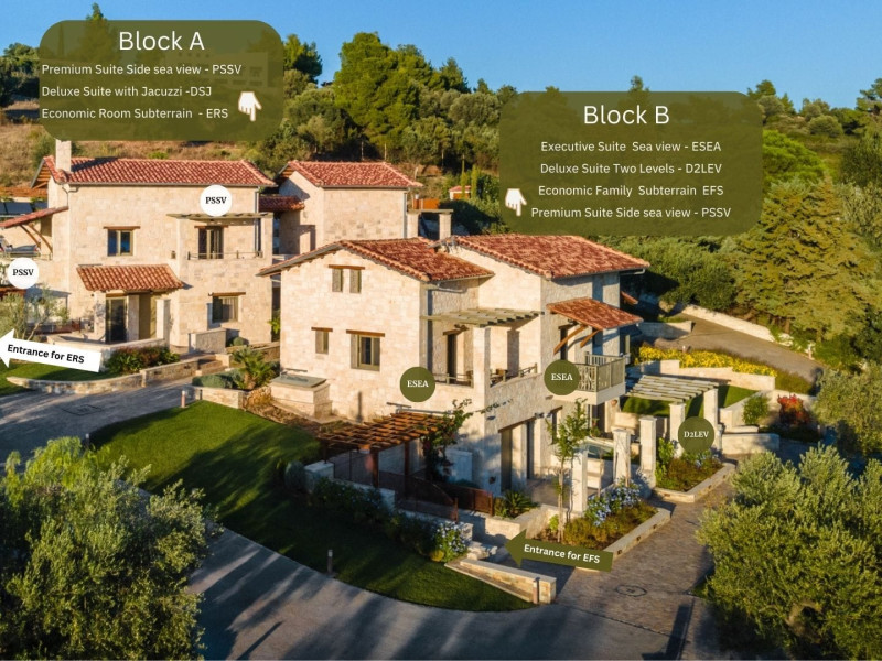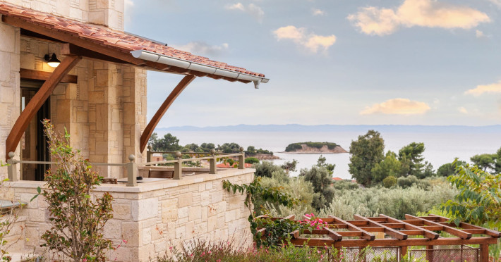 Kastri Elia is a complex of 10 sophisticated two-storey suites on the slope of a green hillside, in an area of 4 acres, next to Nikiti. Built amidst century-old olive trees and flower gardens with aromatic plants, they gaze unobstructed at the magnificent view of the deep blue Toroneos Gulf.