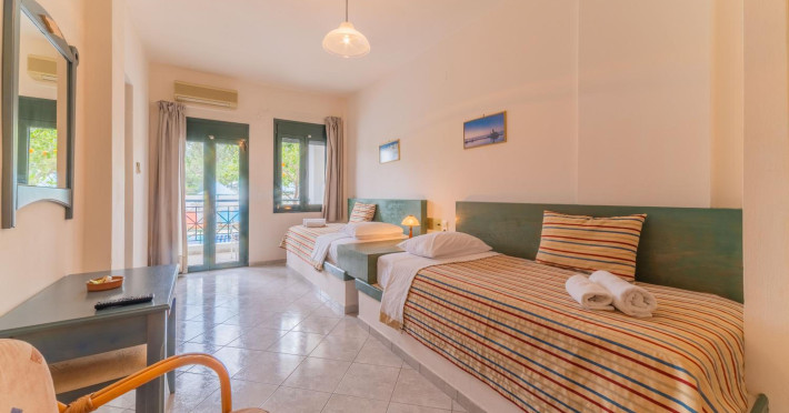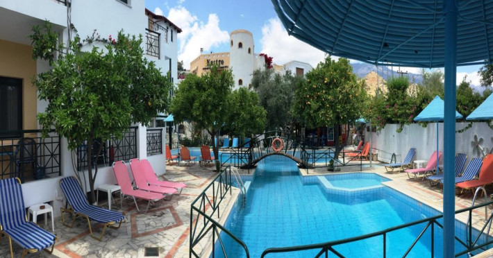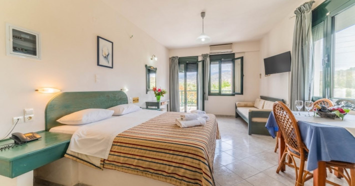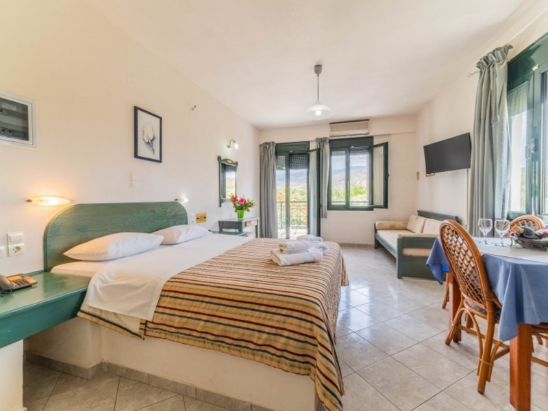 Facilities and services include air-conditioning, Wi-Fi, a safe, a car park, a pool, children's pool. Rooms features air-conditioning, Wi-Fi, TV, balcony, kitchenette, fridge, coffee/tea making facility, hairdryer, telephone.Address: Myrtos, Ierapetra, 72056, Lasithi, Crete, Greece.