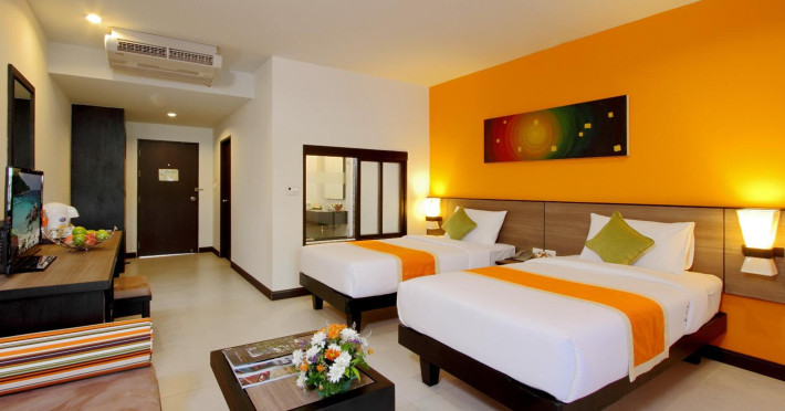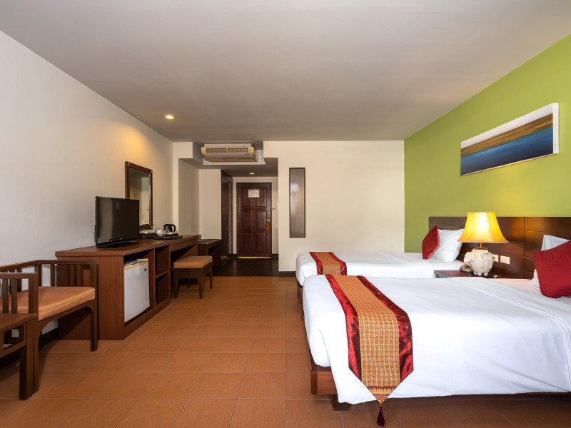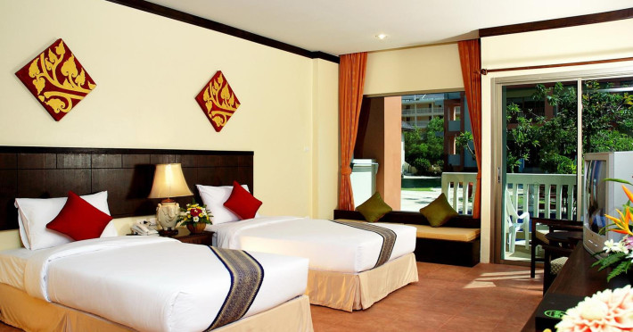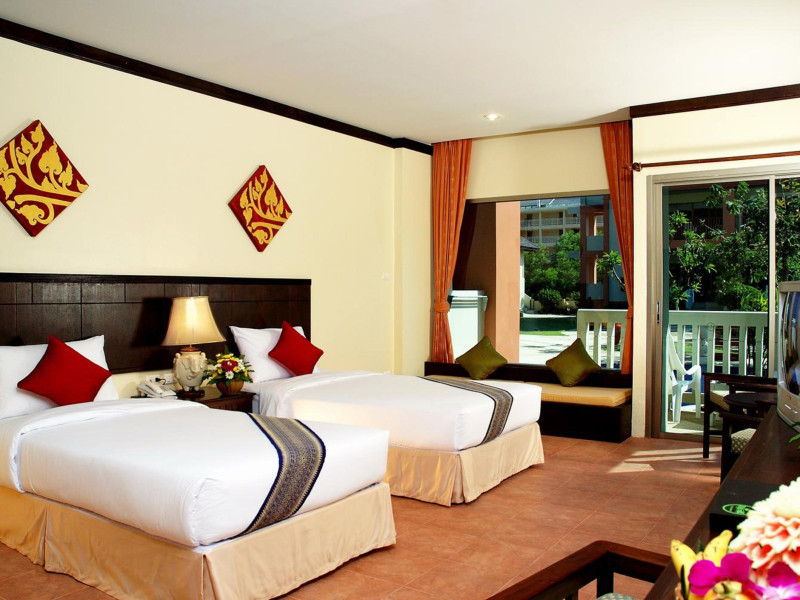Kata Sea Breeze Resort offers hillside accommodation with mountain views, a 5-minute drive from Kata Beach. The resort features 4 swimming pools, a spa, and Thai and International dining options. Air-conditioned rooms have Thai furnishings and a private balcony. Each room includes a satellite TV, refrigerator, and tea/coffee making facilities. Guests can enjoy Thai massage, the fitness room, and drinks at the pool bar. The hotel offers car rental, laundry services, a business center, and a 24-hour front desk. Wi-Fi is available. Dining options include a restaurant, coffee shop/cafe, and room service (during limited hours). A bar/lounge is also available. Buffet breakfasts are available daily (surcharge). Airport transportation is available (surcharge). Free self-parking is available onsite. The Kata Sea Breeze Resort is a Tourist hotel. The nightlife/restaurants are easily accessible by taxi or bus from the hotel.
