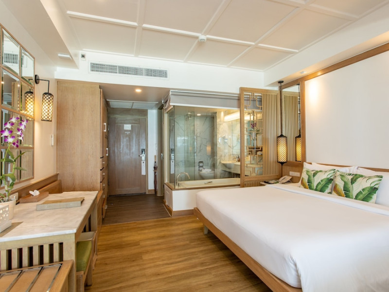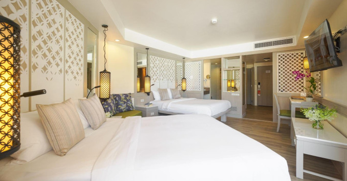 Located on Kata Noi Beach in Karon, Phuket, Katathani Phuket Beach Resort offers direct beach access and features multiple swimming pools and dining options, including restaurants and bars. Guests can enjoy a full-service spa and complimentary Wi-Fi. The resort provides free self-parking and offers individually decorated rooms with private balconies. An airport shuttle is available for a surcharge. Additional amenities include a fitness center, concierge service, babysitting (surcharge), laundry service, and meeting/conference space. The Katathani Phuket Beach Resort is a Beach Resort, Honeymoon, Leisure, Resort, Tourist hotel. The nightlife/restaurants are easily accessible by taxi or bus from the hotel.