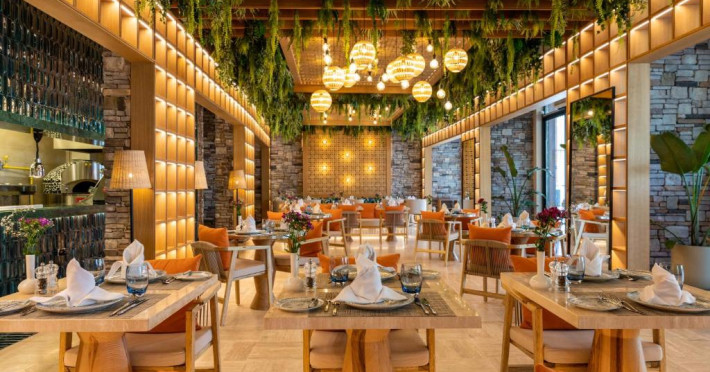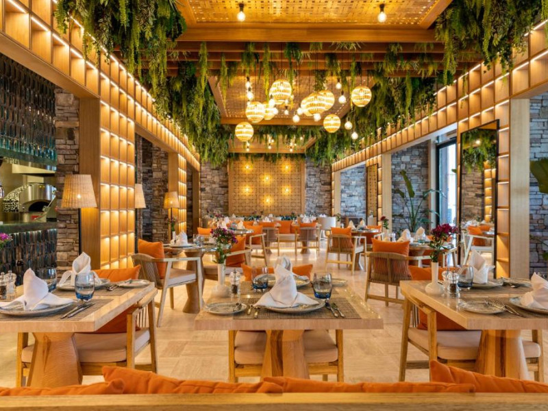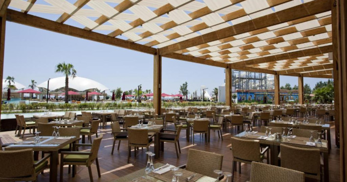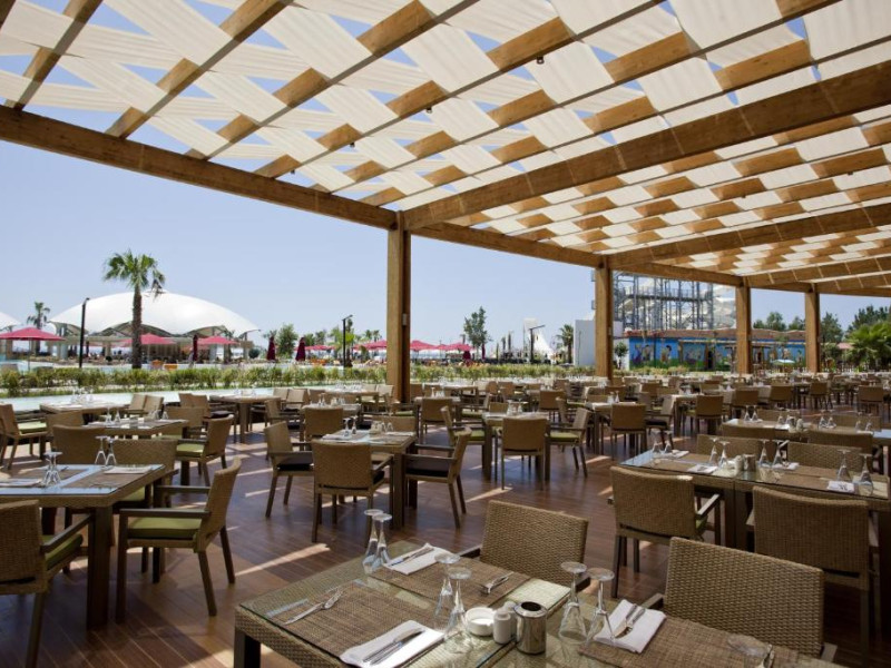 Restaurant principal, restaurante A la Carte, patiserie, aqua park cu tobogane, program de animatie, muzica live, fitness, aerobic, yoga, pilates, sauna, baie turceasca, volei pe plaja, terenuri de tenis, sporturi de apa. Pentru copii: kids club, loc de joaca pentru copii.