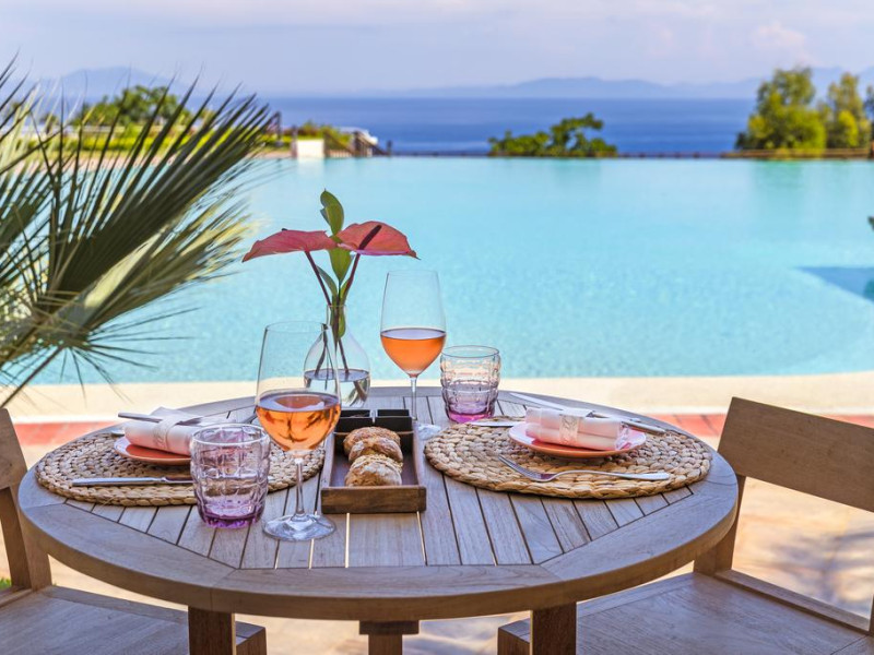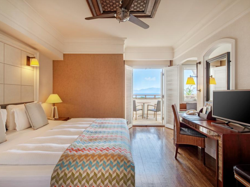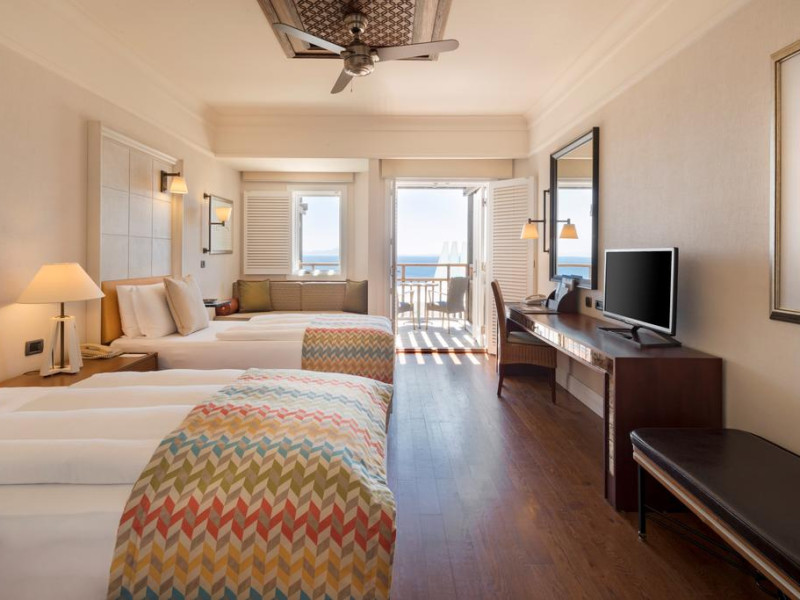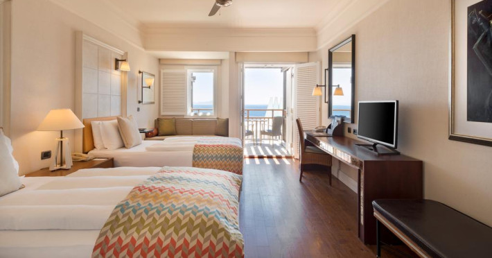 Camerele Hotelului Kempinski sunt de nefumători şi sunt decorate modern, cu mobilier elegant. Toate au zonă de relaxare, TV prin satelit şi baie spaţioasă. Unele camere au vedere panoramică la Marea Egee.
