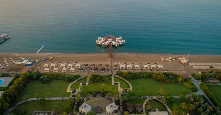 Oaspeții pot savura diferite specialități din bucătăria turcească și internațională. Restaurantele şi barurile au terase cu vedere uimitoare la Marea Mediterană şi la Munții Taurus.