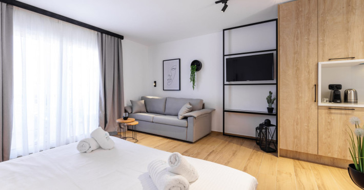 Kentro Luxury Suites are 4 located right at the heart of Chanioti Village!All of our units are totally renovated!