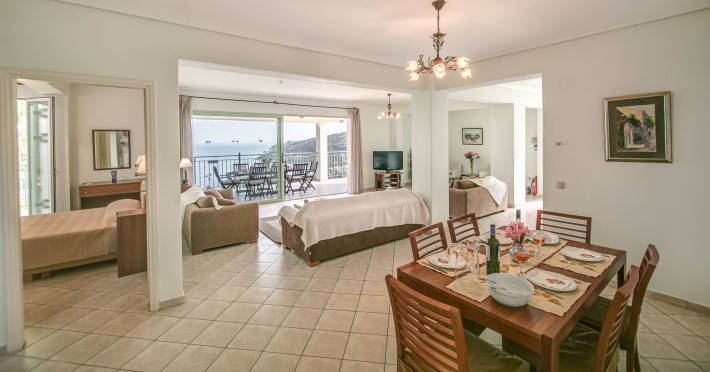 Cazare spațioasă: Kerasia Bay View Villa din Kerasá oferă o vilă spațioasă cu patru dormitoare și patru băi. Oaspeții se pot bucura de vedere la mare, piscină cu vedere, terasă la soare și grădină luxuriantă.